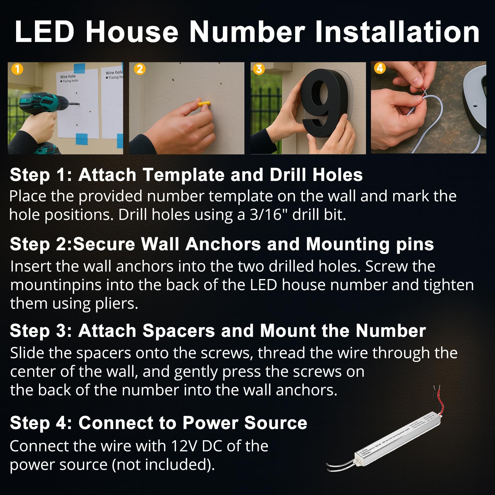 9 Inch Backlit House Numbers for Outside, Stainless Steel, LED Illuminated Ho...