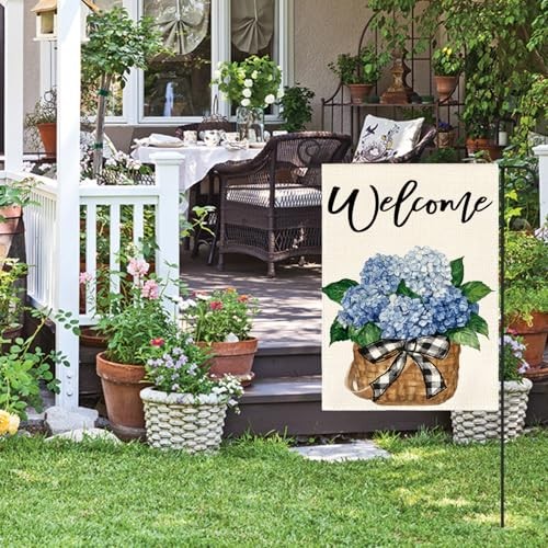 как выглядит Hydrangea Spring Summer Garden Flag 12x18 Inch Double Garden Size-12 x 18" фото