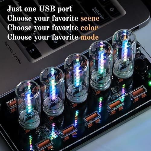 4PCS Mini USB Car Atmosphere Lights, Auto-Changing 7 Multi-color Linear Style