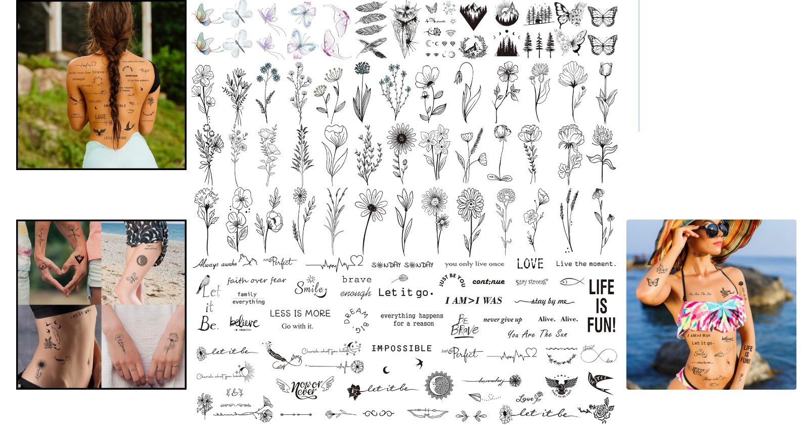 100 Sheets Multicolor Temporary Tattoos - 240 Floral Inspirational Designs