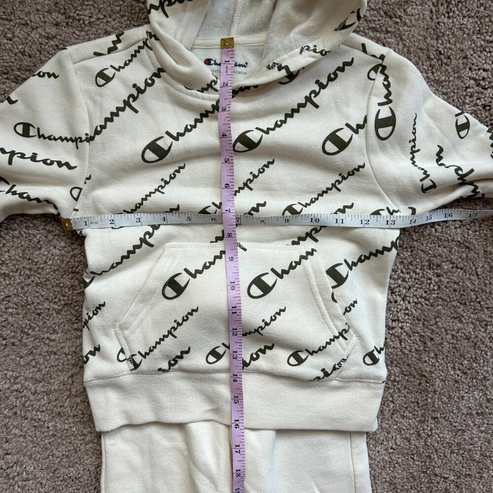 Champion 2 Piece Hoodie Jogger Logo Print Natural White Sweat Set NWT Kids 5