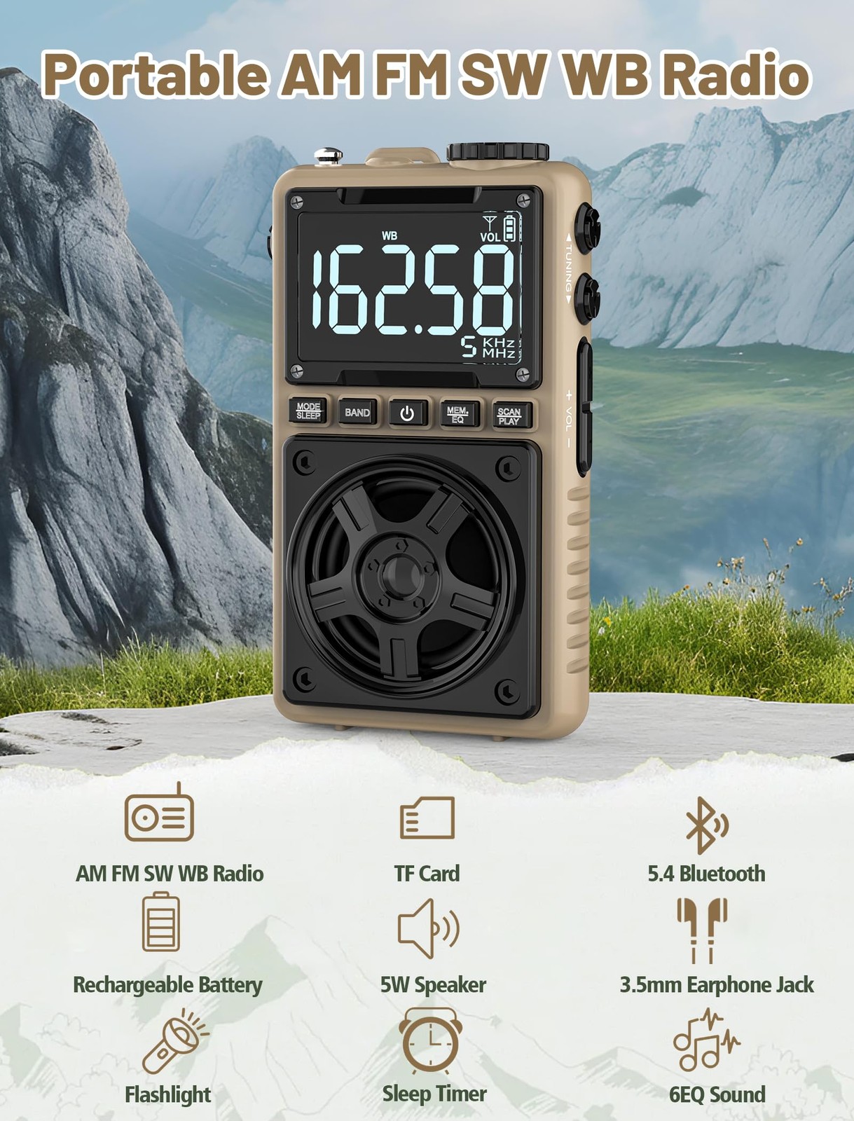 Bluetooth Shortwave Radio with NOAA Weather Alert,1250mAh Rechargeable