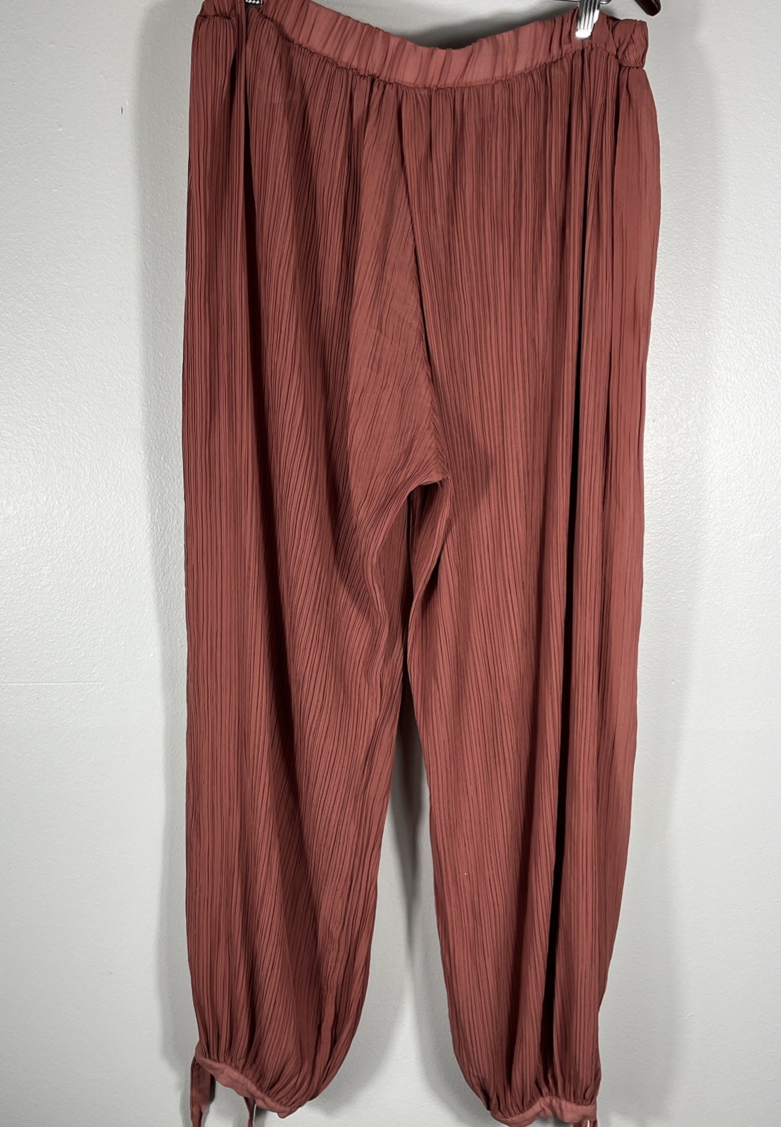 как выглядит ZARA ZW Collection Flowy Pleated Balloon Pants Brick Ankle Tie Size Large Boho фото