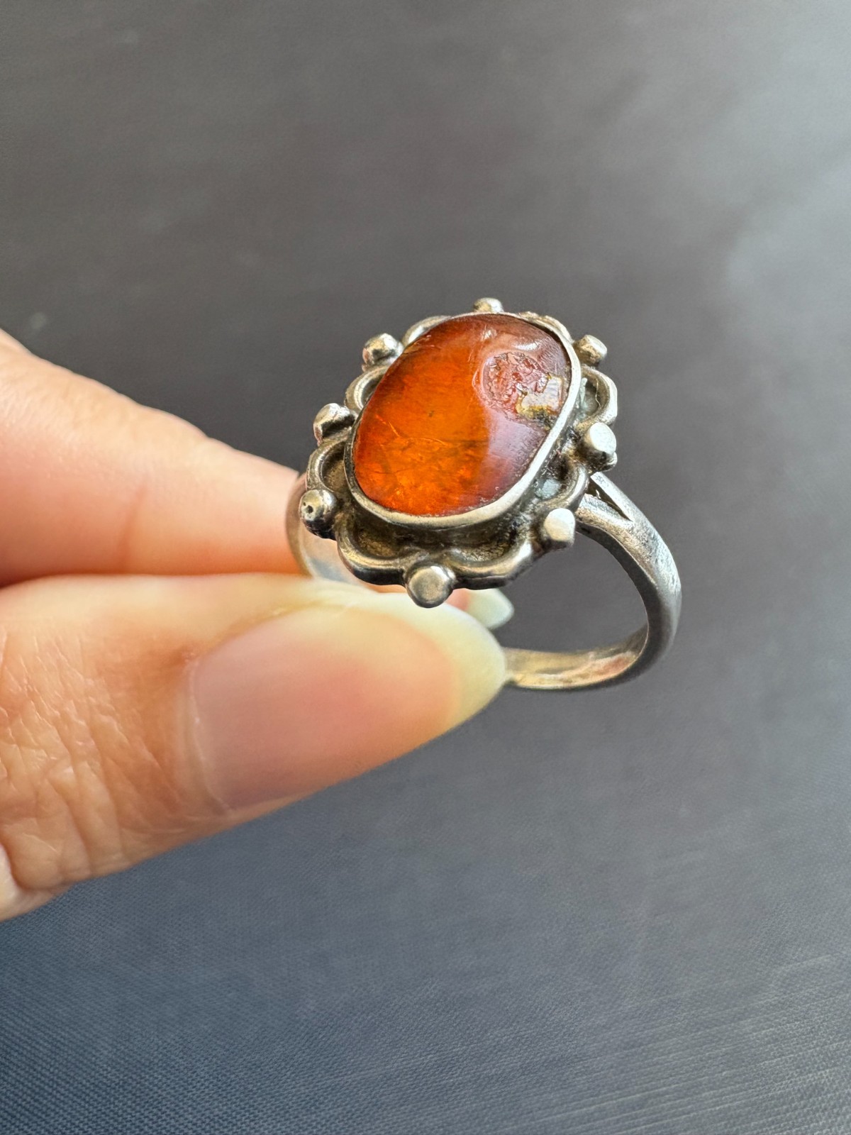 Vintage Silver Ring Natural Baltic Amber Ring Handcrafted Size 8.75 US