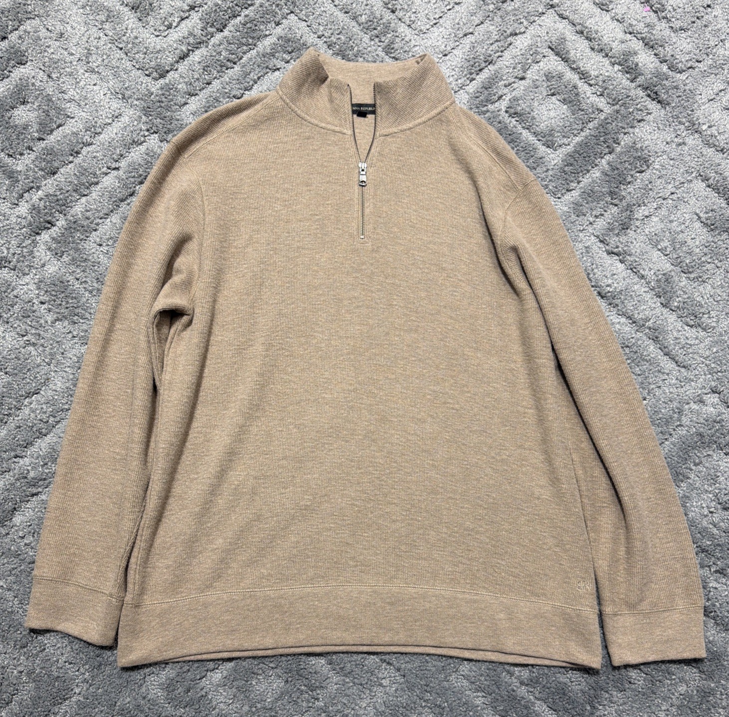 Banana Republic Mens Waffle Quarter Zip Pullover Sweater XL Size color Tan