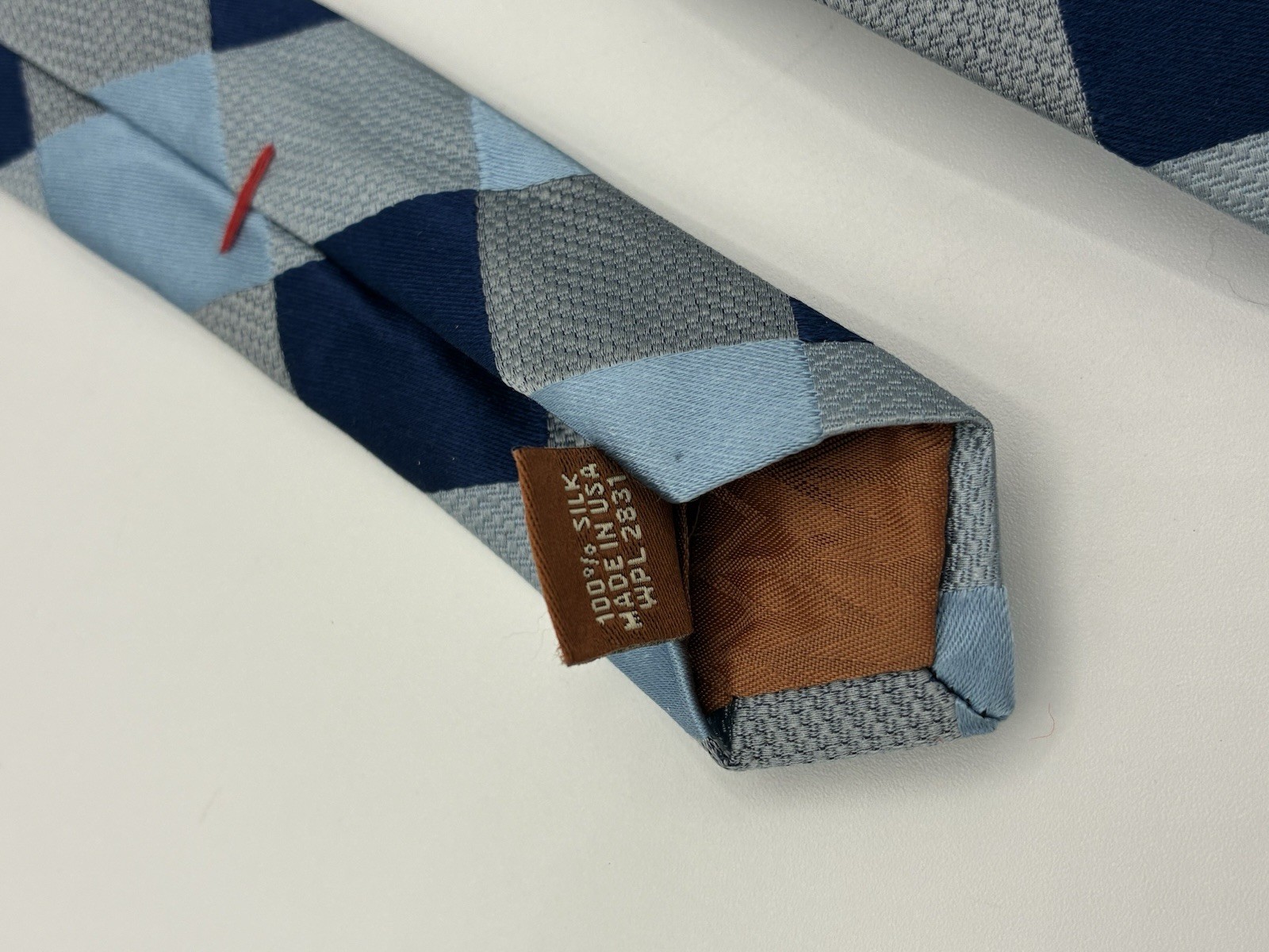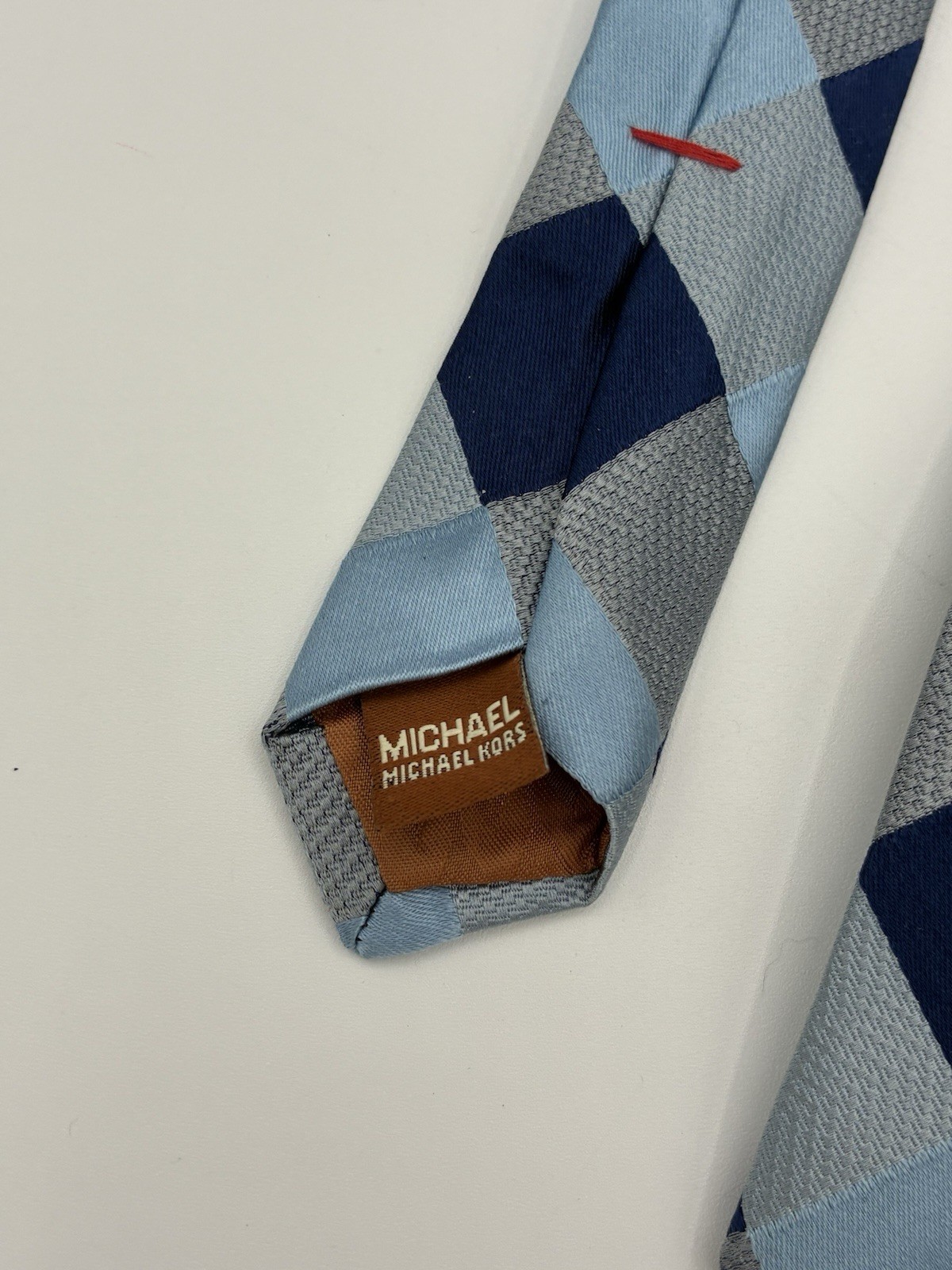 как выглядит Michael Kors Mens Silk Blend Tie Blue Navy Grey Checkered Diamond Pattern EUC фото