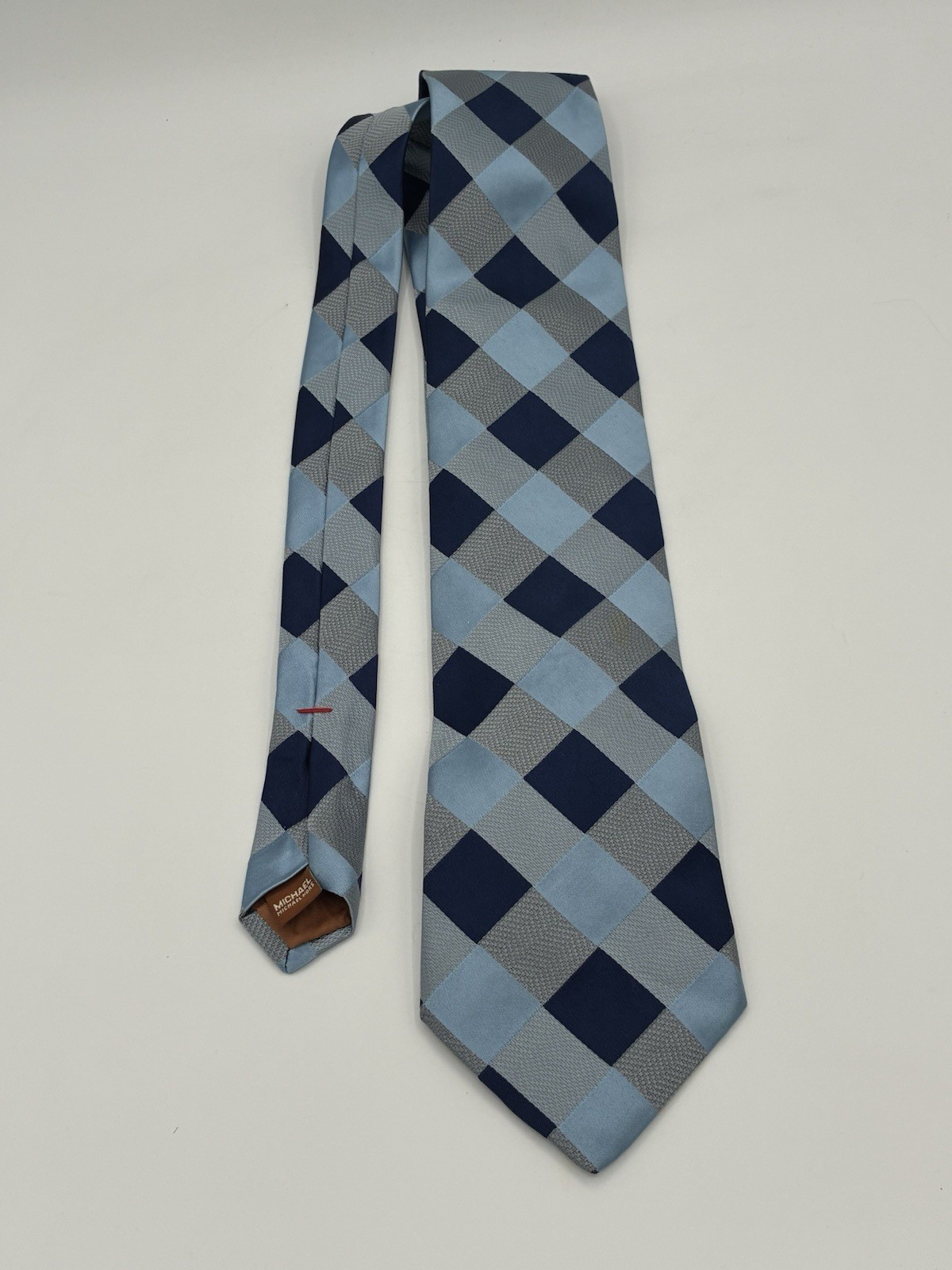 Michael Kors Men's Silk Blend Tie Blue Navy Grey Checkered Diamond Pattern EUC