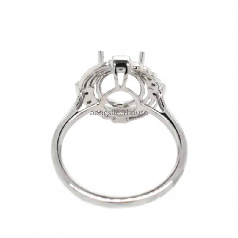 925 Sterling Silver 8X10MM Oval Semi Mount Ring-Side CZ Halo Prong Setting Ring