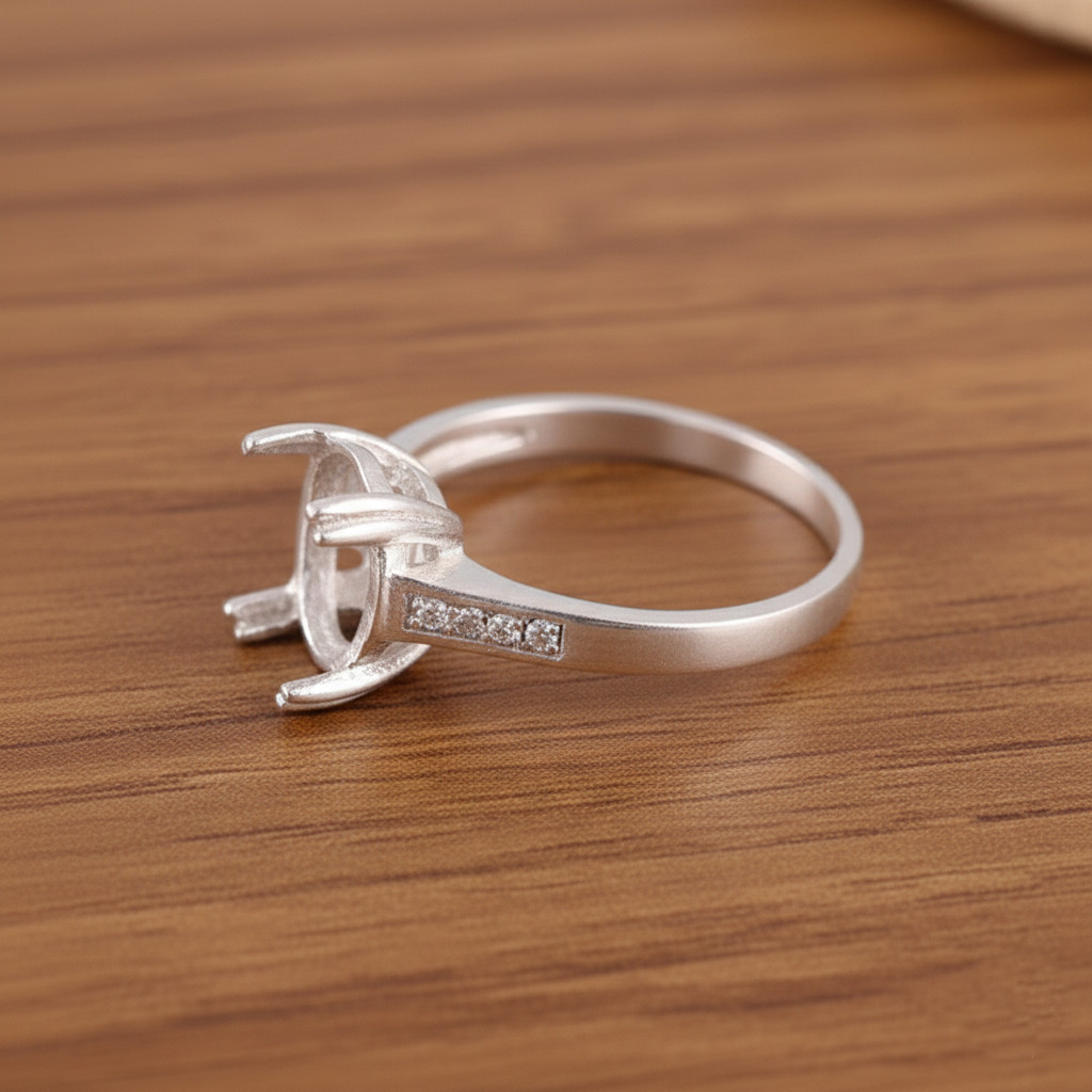 925 Sterling Silver 8x10mm Oval Semi Mount Prong Ring-Handmade CZ Accent Ring