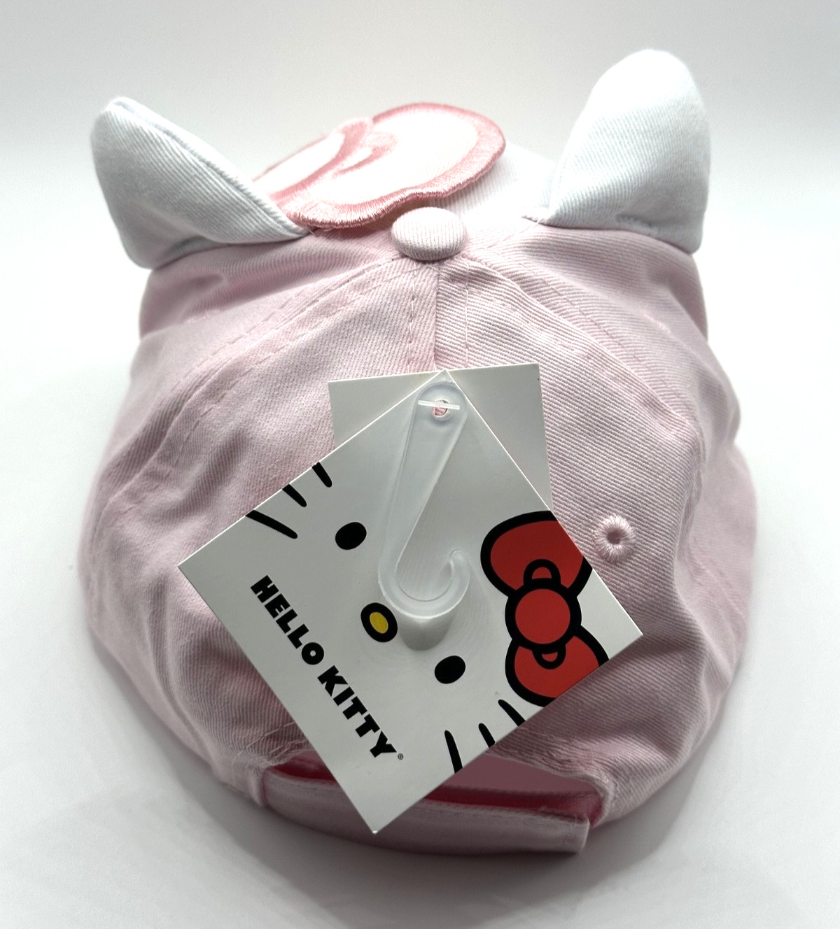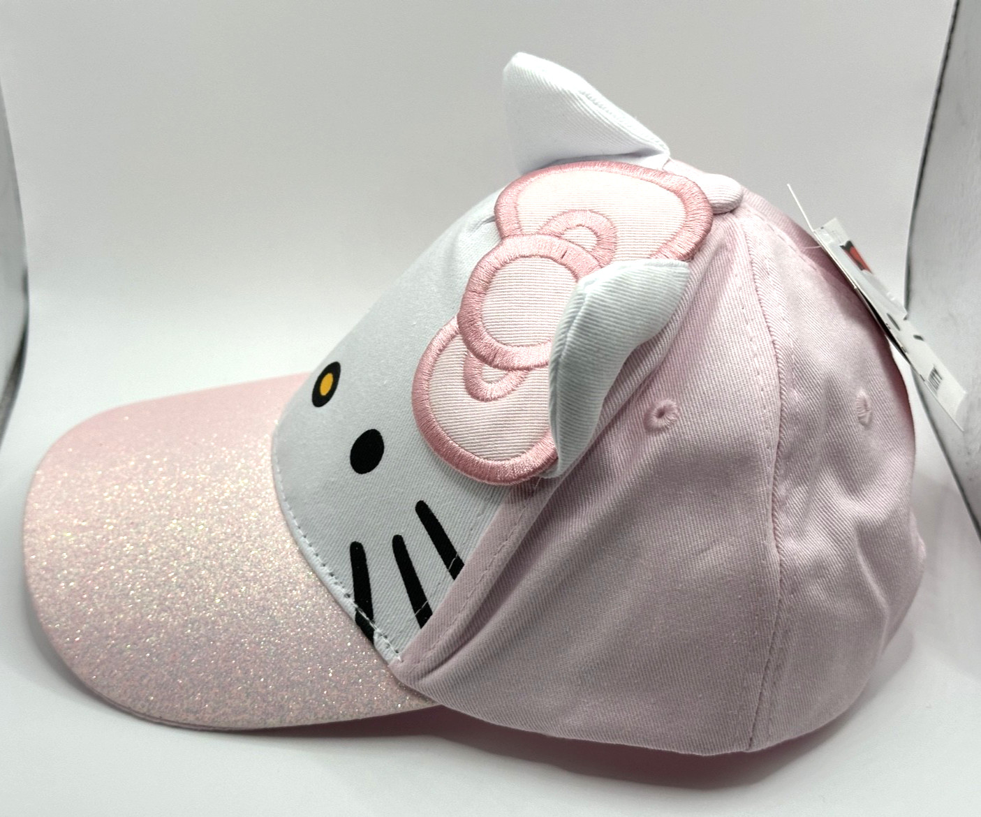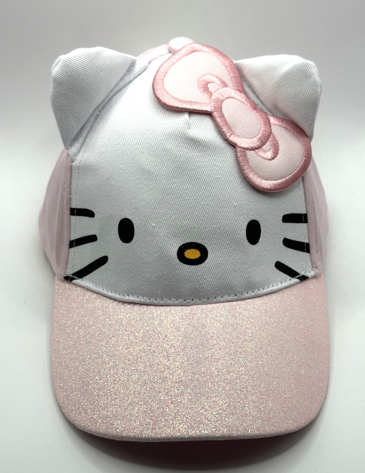 Hello Kitty Girls Hat Pink White w/Ears Pink Bow Pink Glittered Bill/Visor NWT