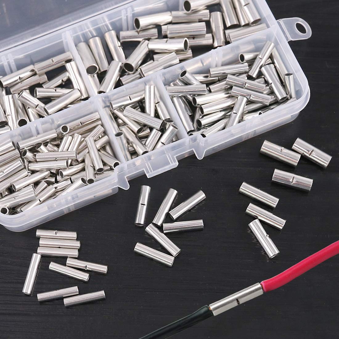 как выглядит 220Pcs Non-Insulated Butt Connectors Assortment Kit, 22-16/16-14/14-12/12-10 ... фото