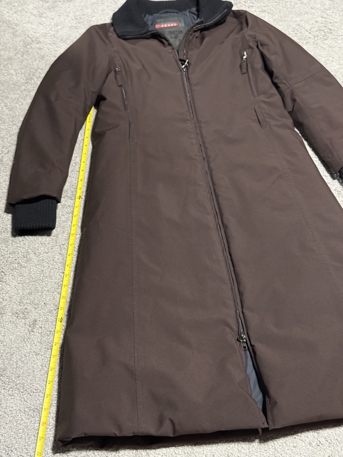 Prada Italy Women's Long Winter Coat Art. 108218 Brown Fur Trim Size 40