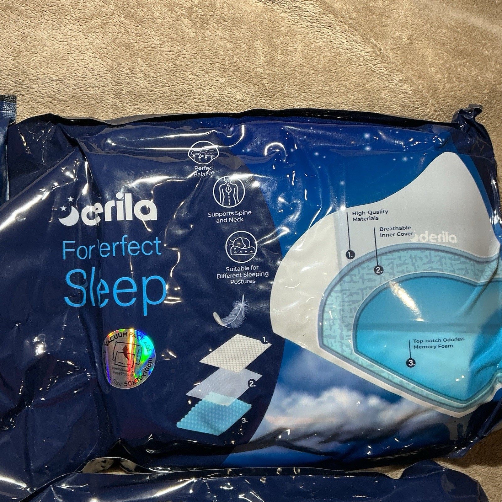 как выглядит Two Derila Memory Foam Pillows With Covers For Neck Spine Support 50X30x10cm фото
