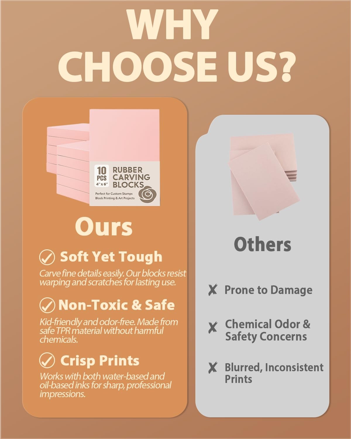 Rubber Linoleum Blocks set 10Pcs 4x6 In Stamp Carving craft Kit New