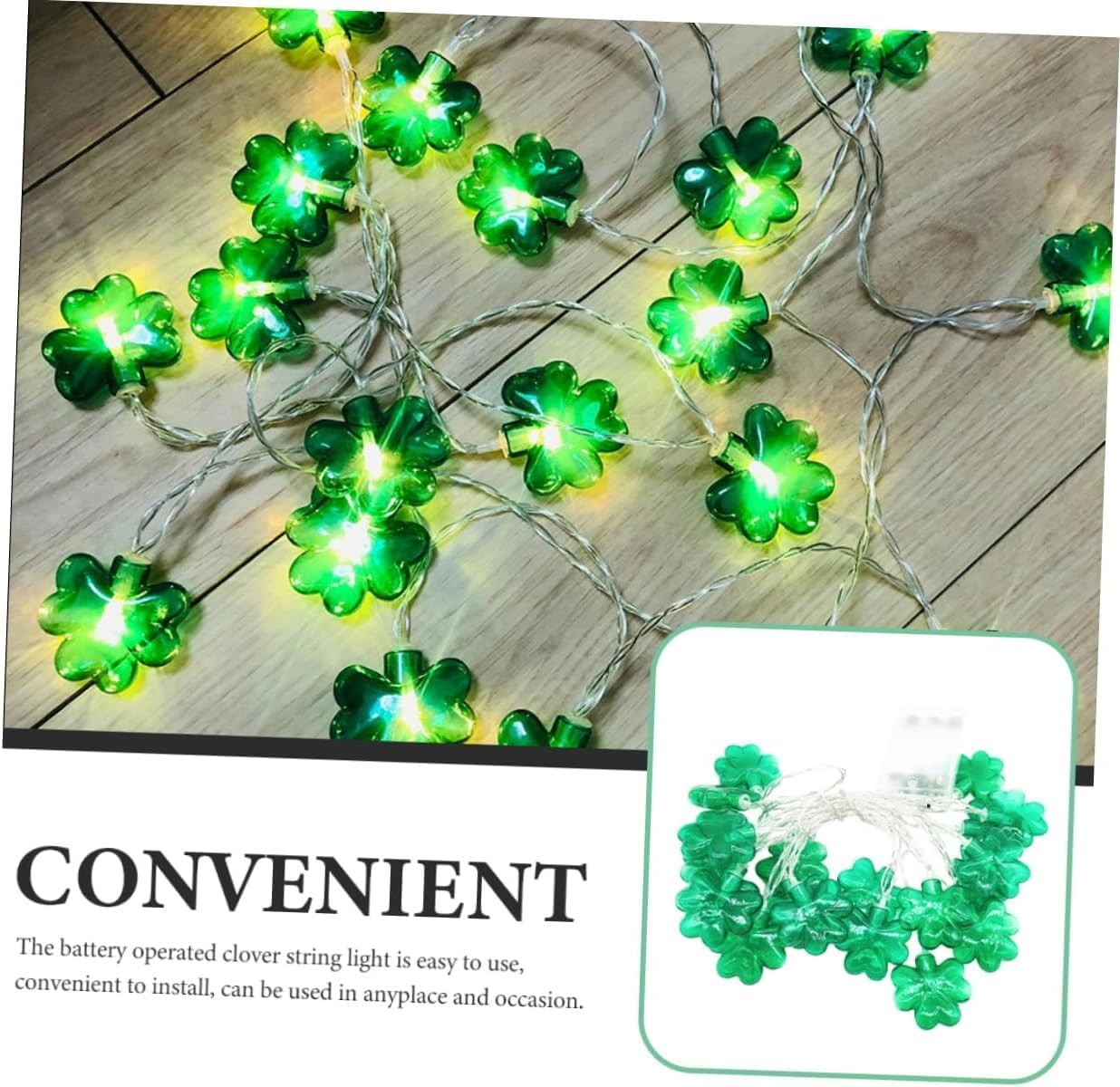 как выглядит St Patricks Day Decorations Shamrocks String Lights Battery Operated 10 ft 20... фото