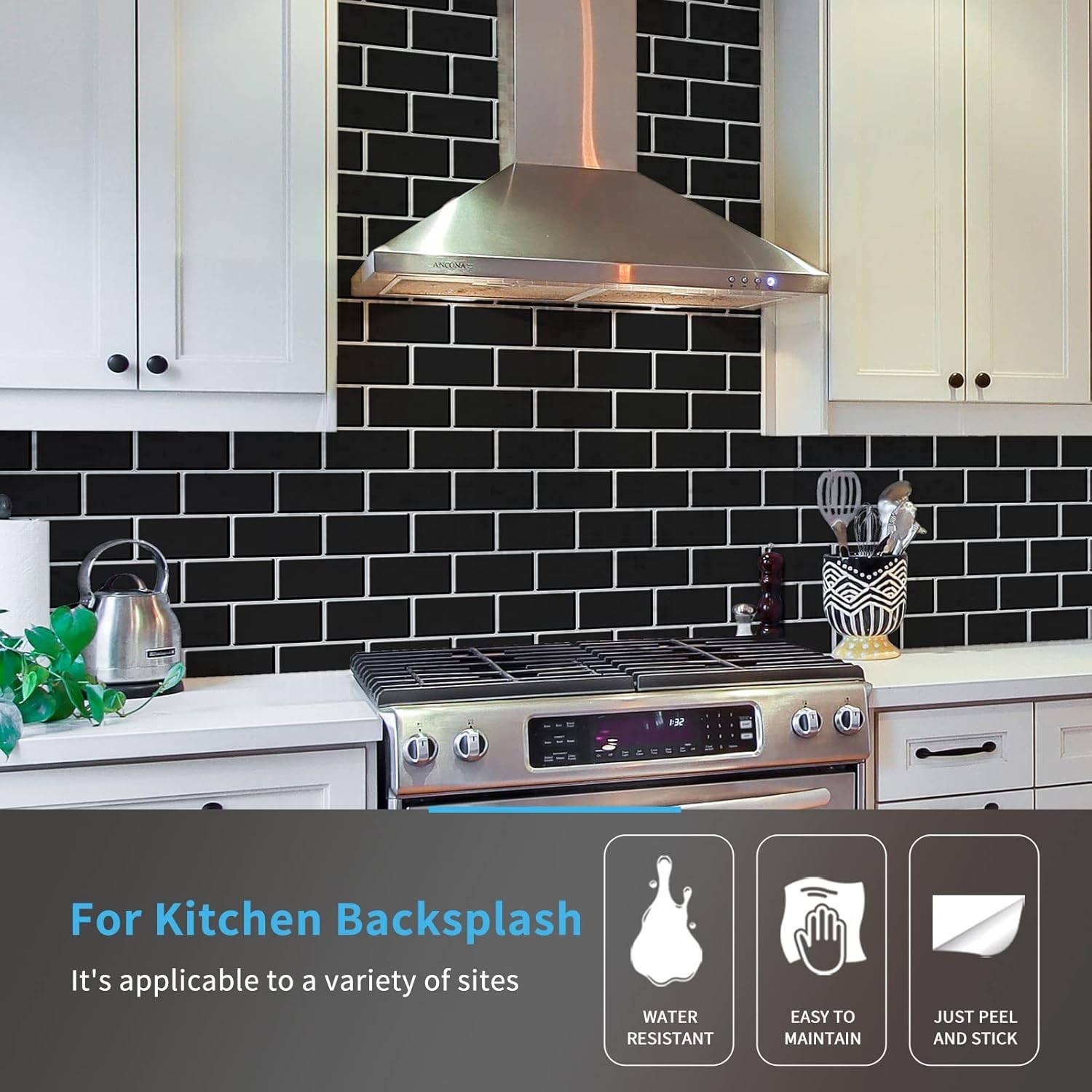 12 x 12 Peel and Stick Backsplash Tiles for Kitchen, Shiny Black