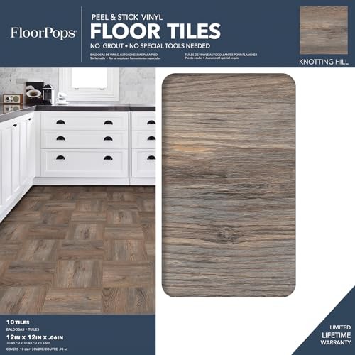 FP3323 Knotting Hill Peel Stick Floor Tiles, Brown 12L x 12W x 0.06T