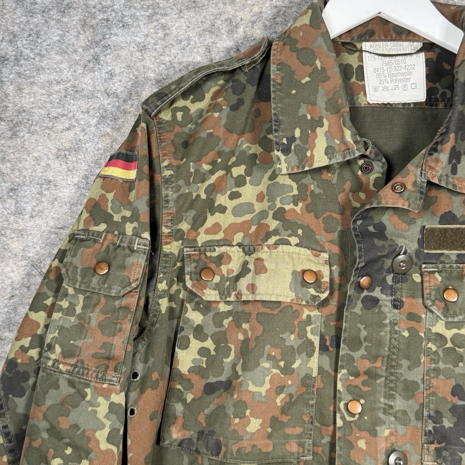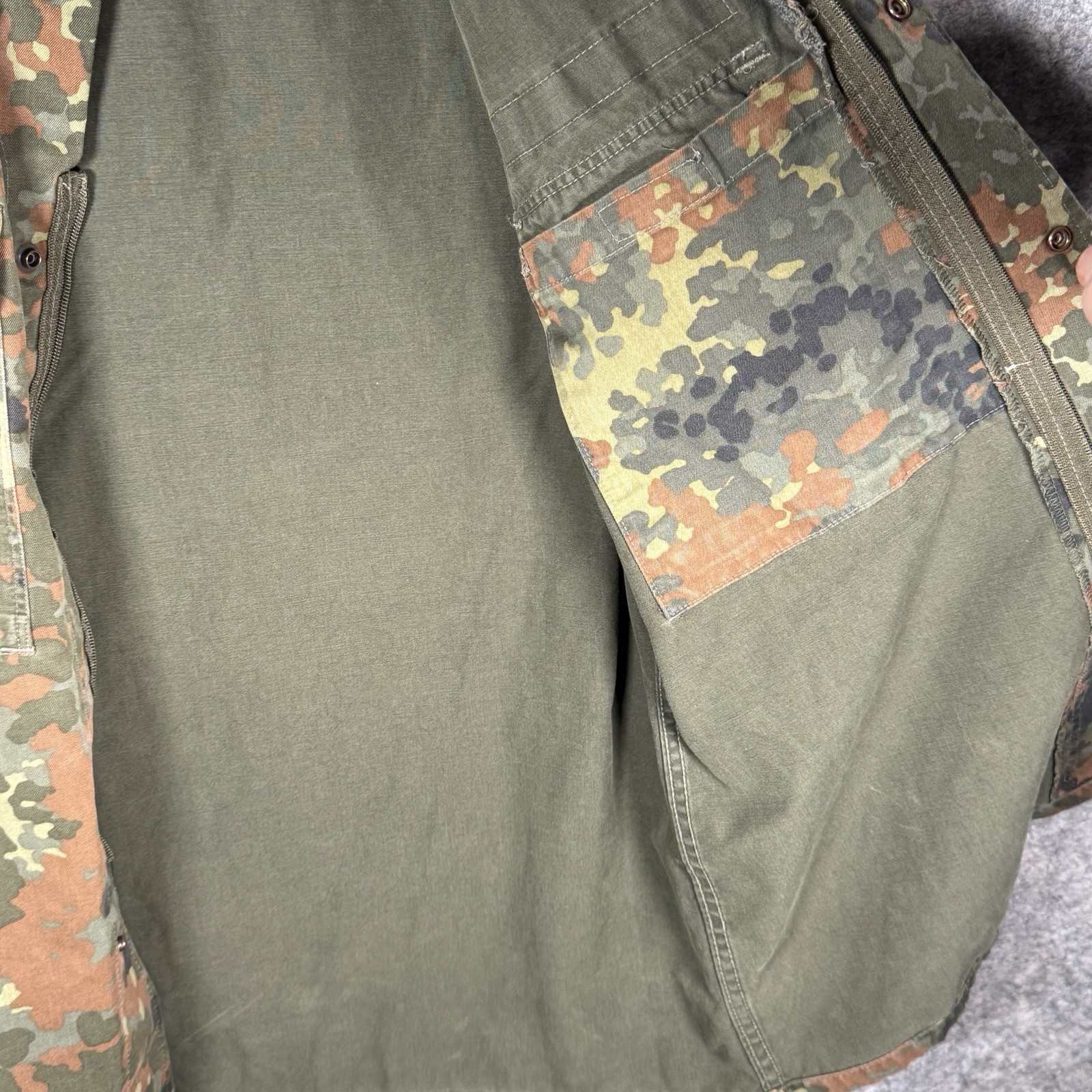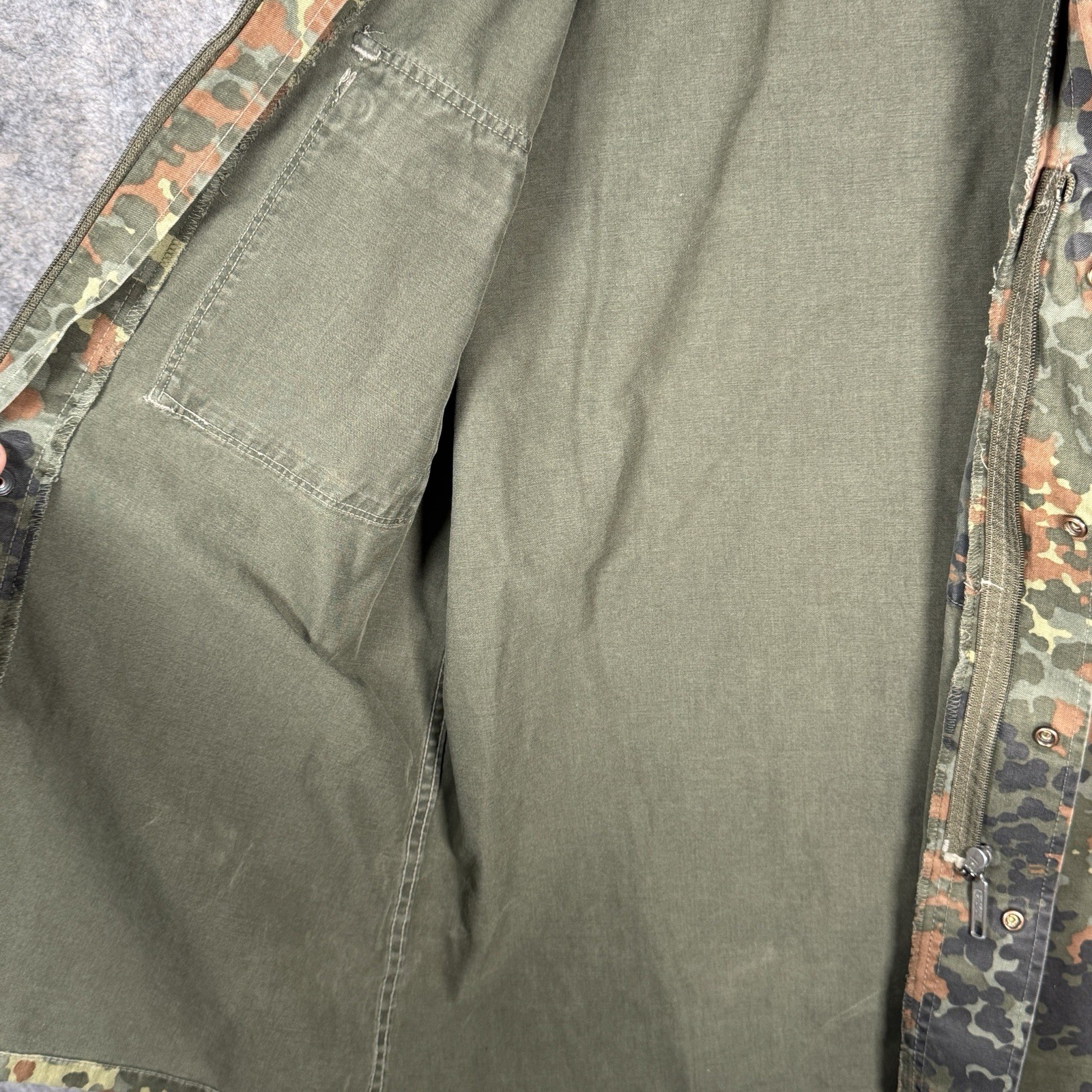 как выглядит Vintage 90s German Military Jacket Mens Size L/XL Flecktarn Camo Field Zip Snap фото