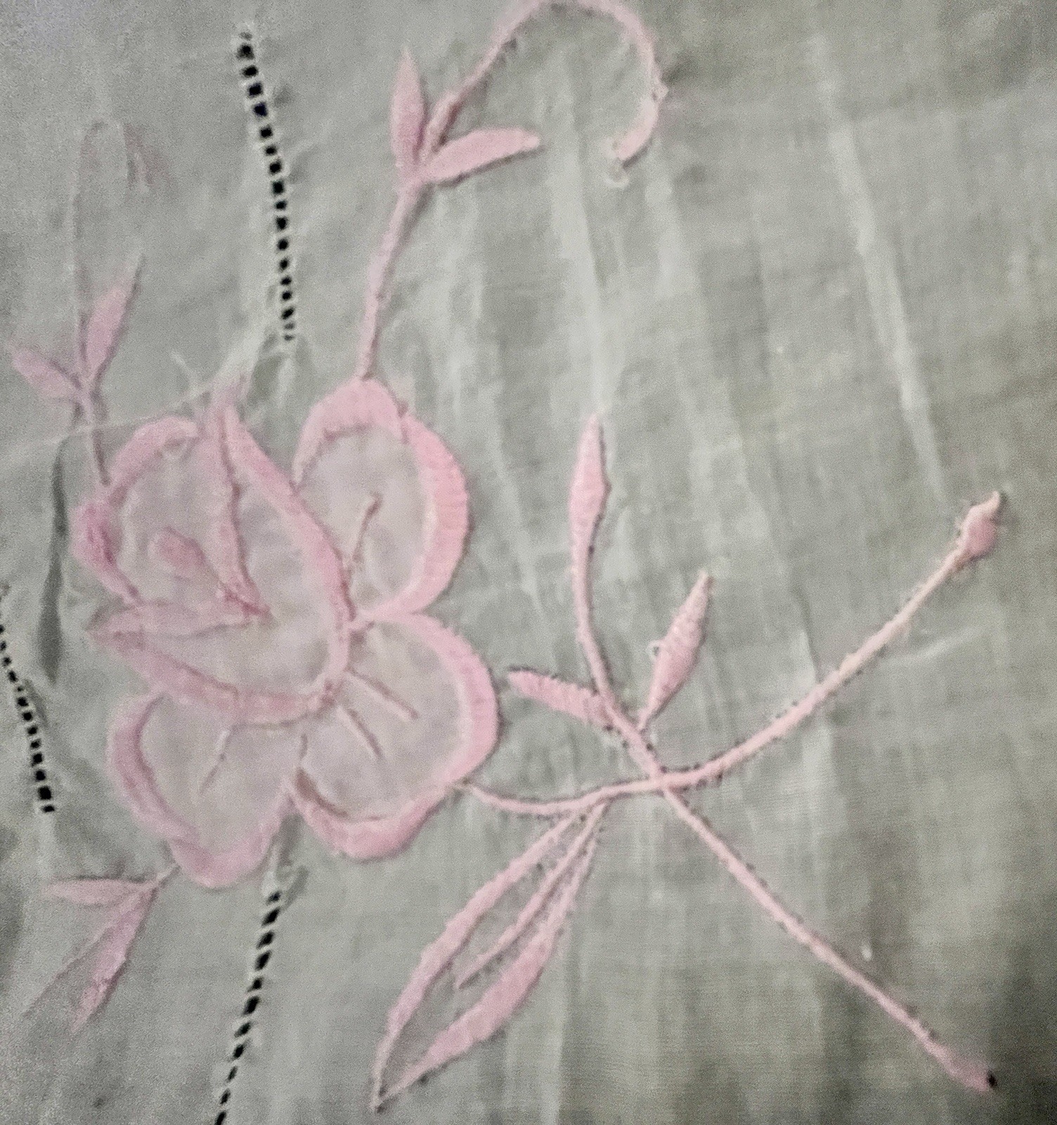 Vintage Ladies Hankie Embroidered Pink Floral