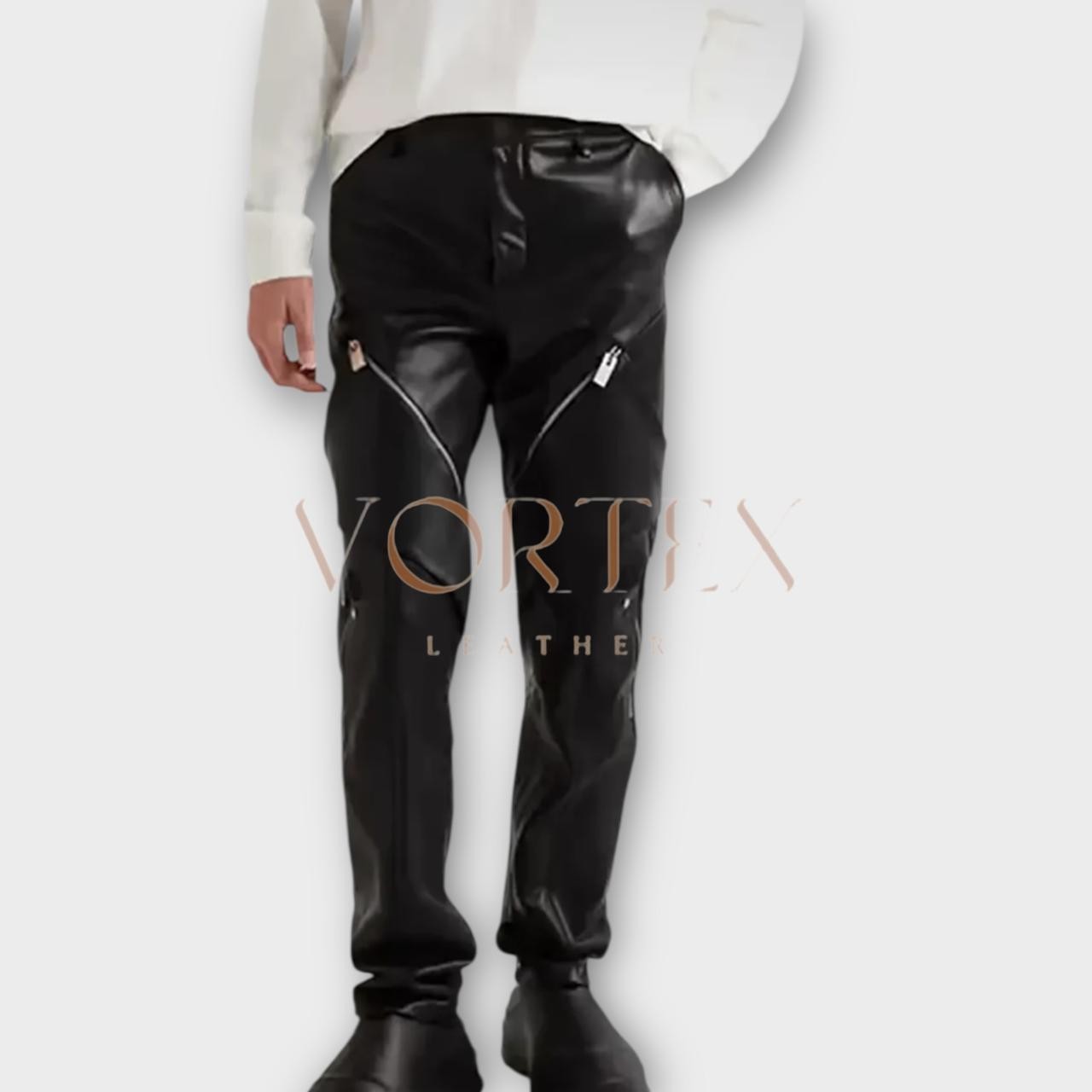 как выглядит Mens Black Leather Pant Zipper Style Pant Genuine Soft Lambskin Leather Pant фото