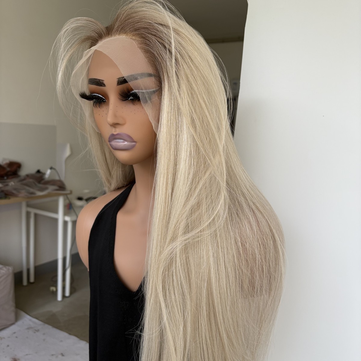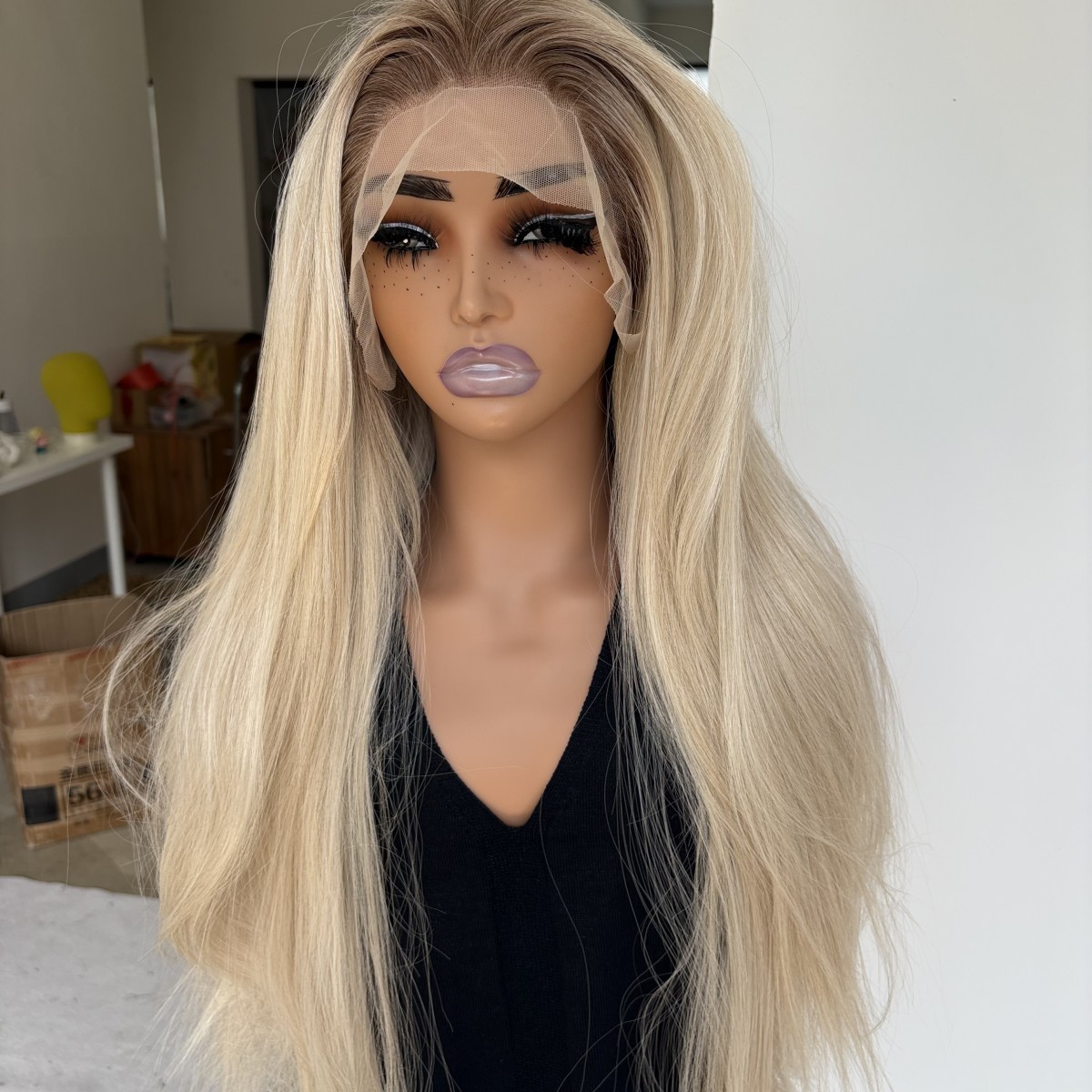 как выглядит HD Lace Front Wig Long Straight Ombre Blonde Synthetic Hair Heat Resistant фото