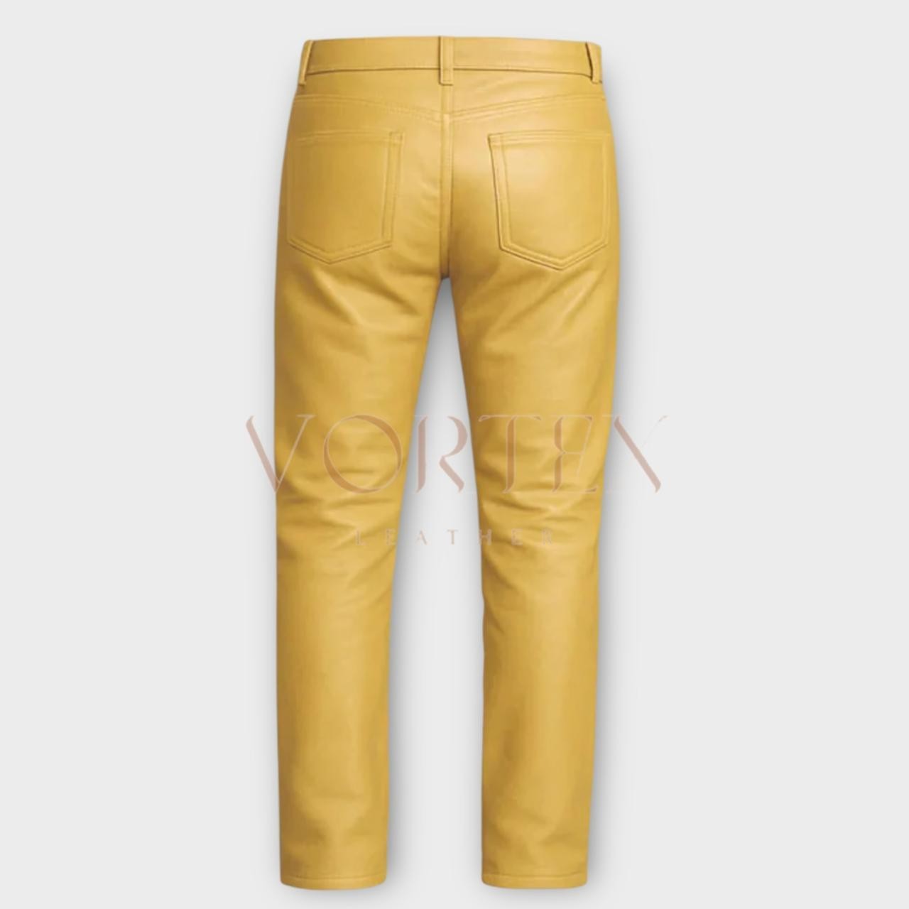 Men's Yellow Causal Leather Dress Up Pant In Genuine Soft Lambskin Leather Pant