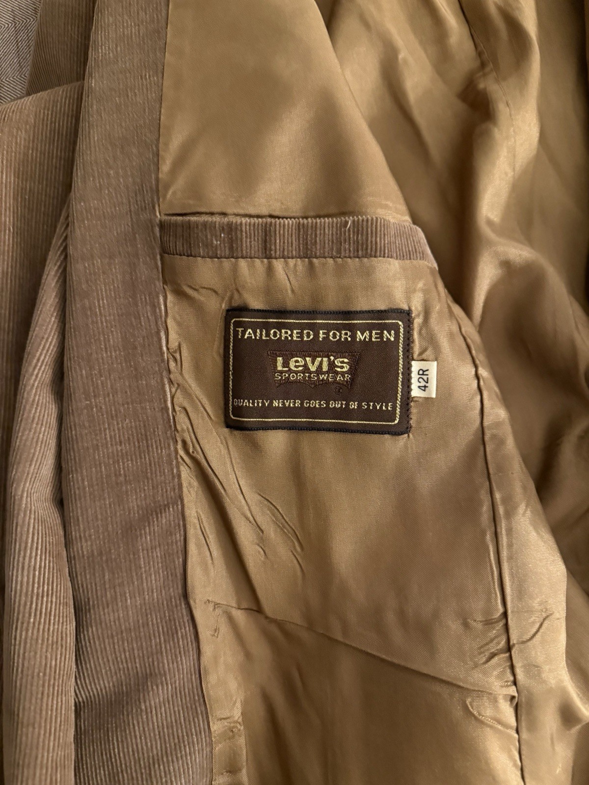 как выглядит Vintage 70 s Levi s Corduroy Blazer Tailored for Men 42R Brown Sport Coat USA фото