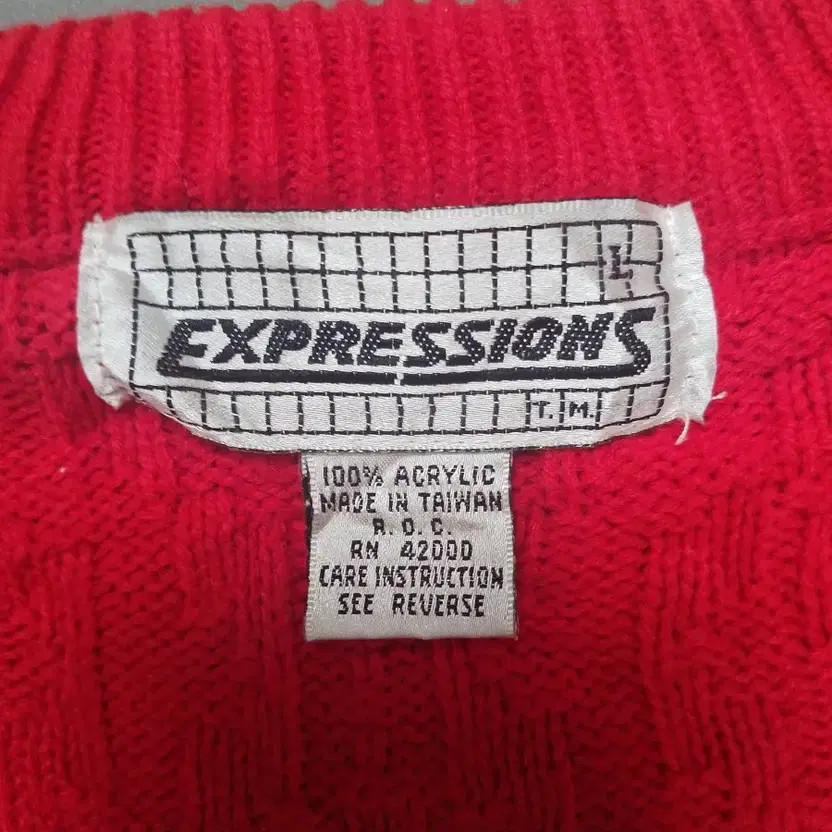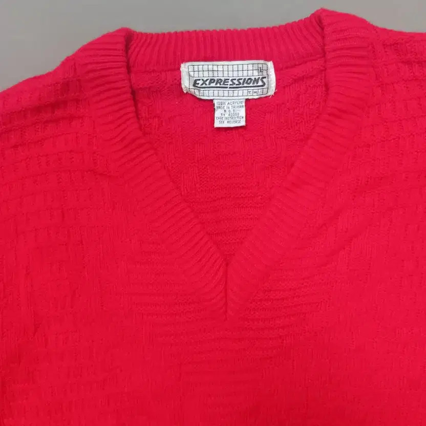 Expression Red Pattern V-Neck Knit Sweater, Size L, Vintage Design