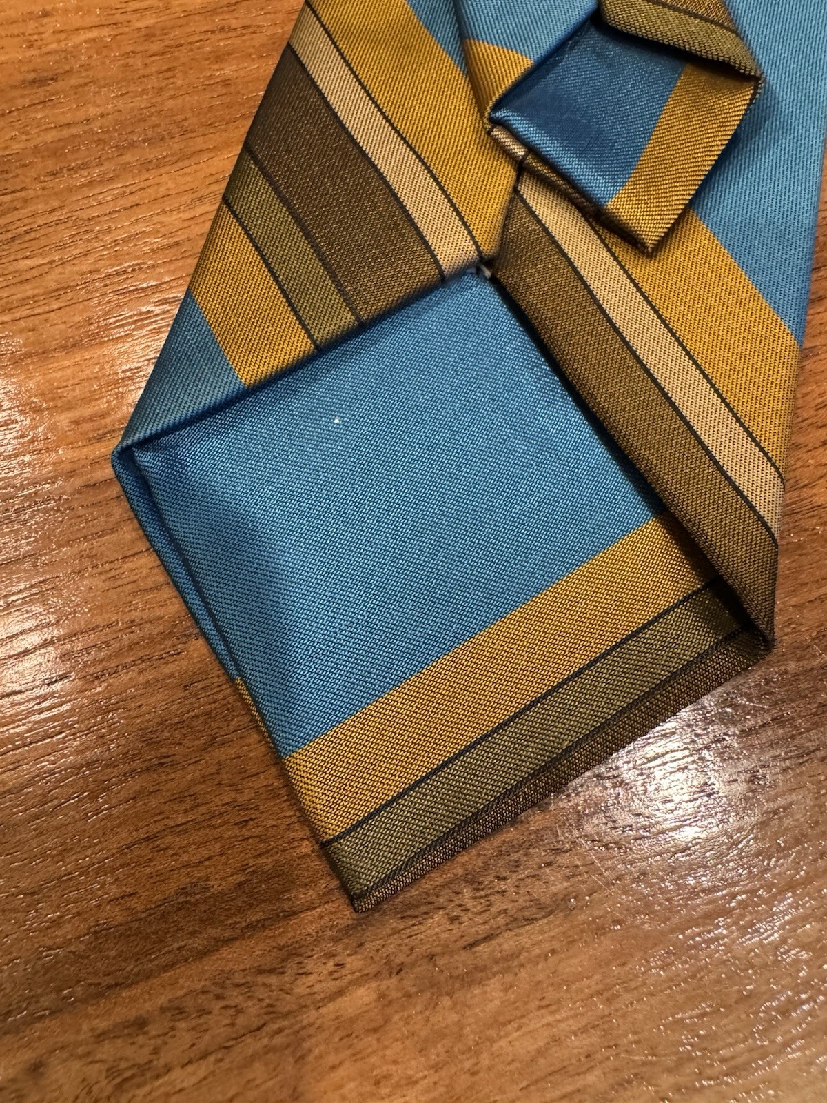 как выглядит Vintage Retro 70s Wemlon By Wembley Mens Neck Tie 54 x2.5 Aqua Brown Striped фото
