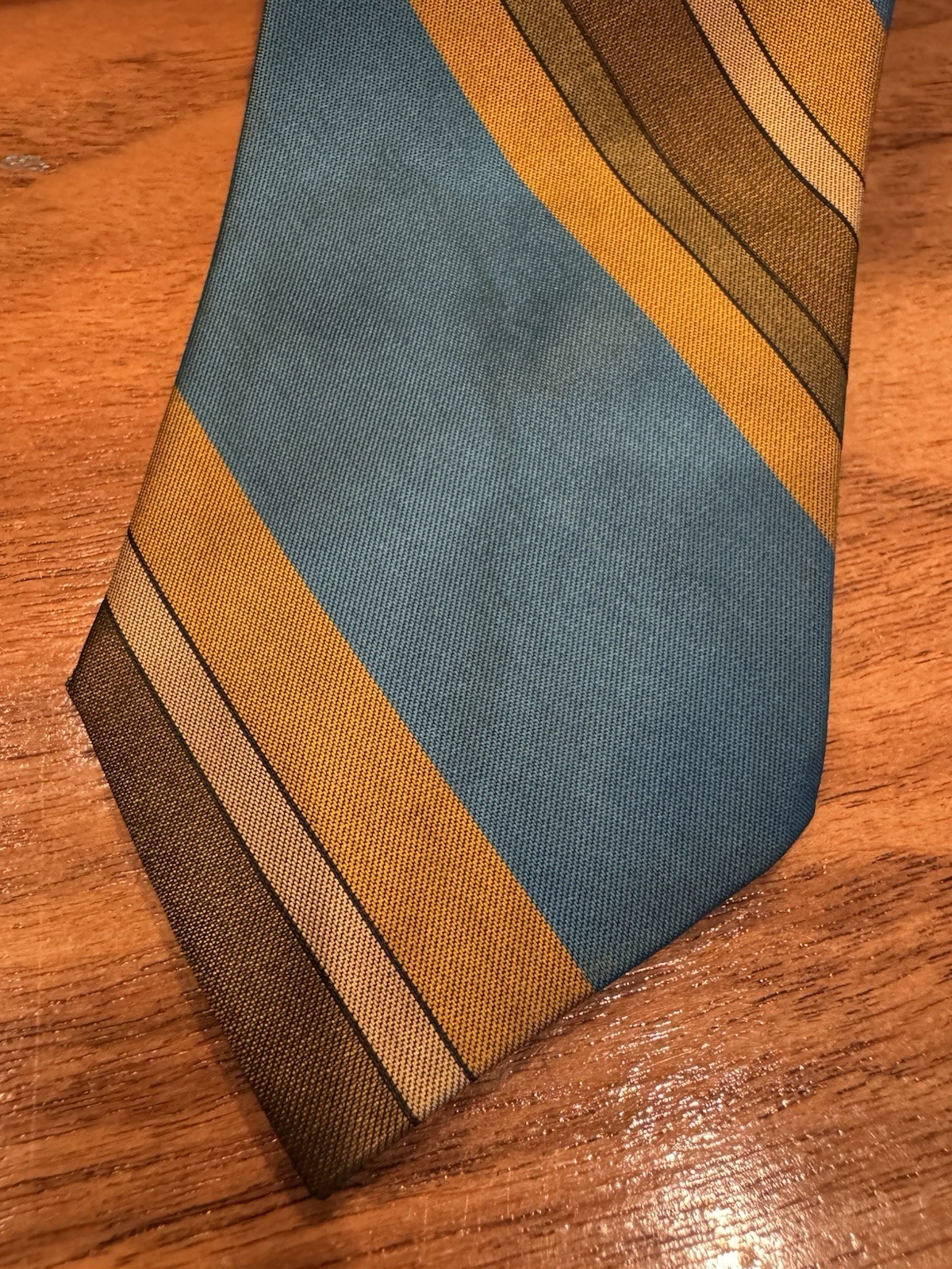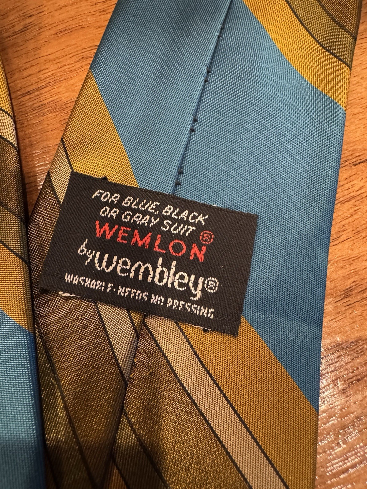 Vintage Retro 70s Wemlon By Wembley Mens Neck Tie 54 x2.5 Aqua Brown Striped