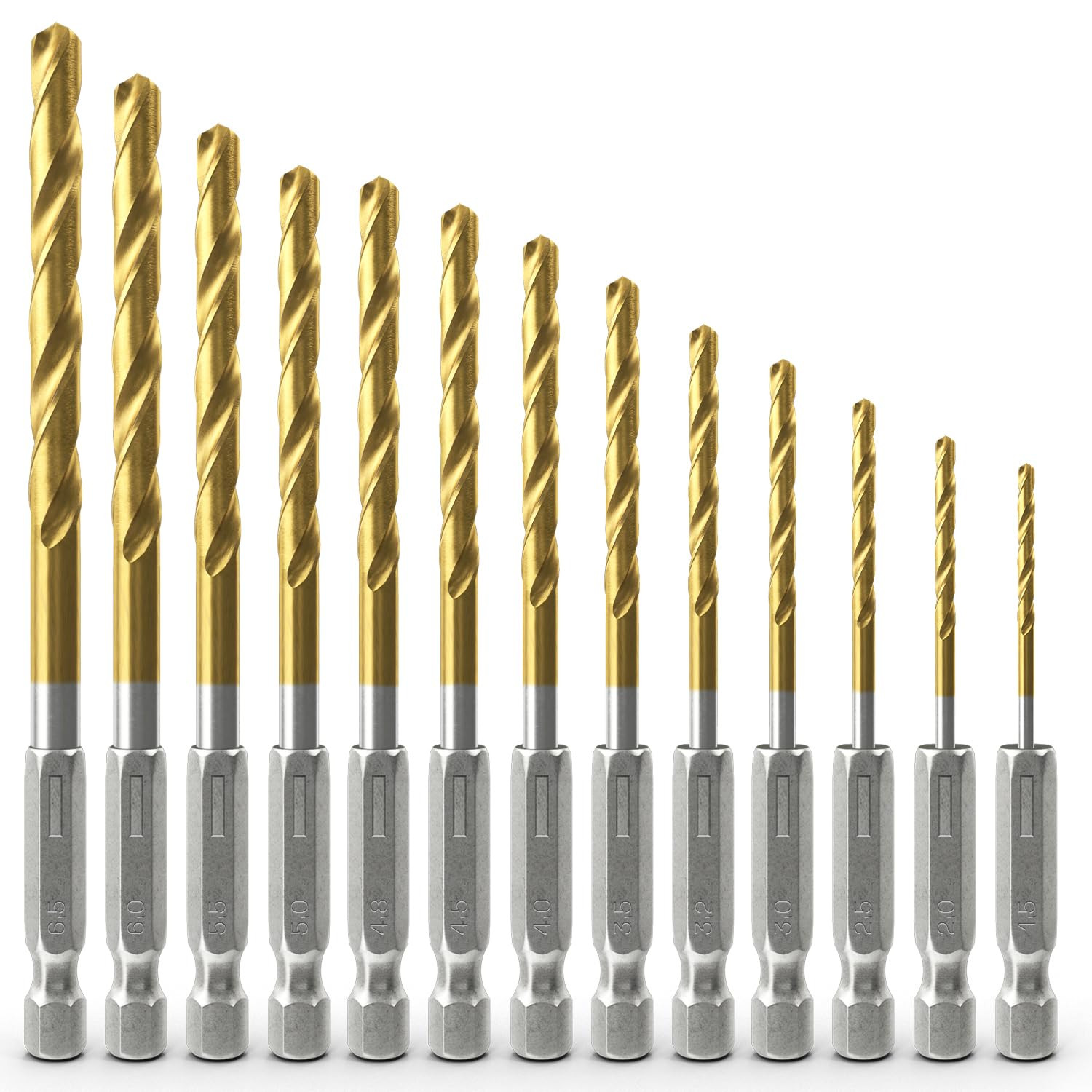 13Pcs HSS Titanium Coated Twist Drill Bit Set 1.5-6.5mm Hex Shank For wood Metal