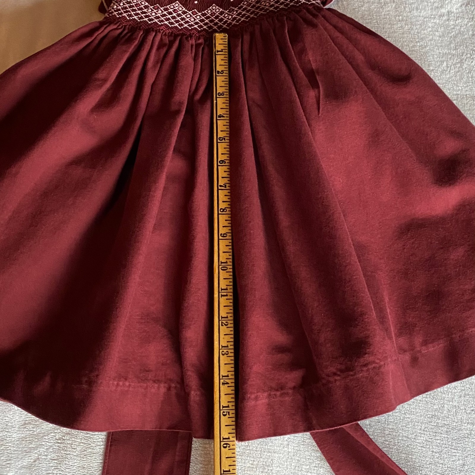 Pepa London 5 Y Dress Burgandy Hand Smocked Perter Pan Collar Puff Short Sleeves
