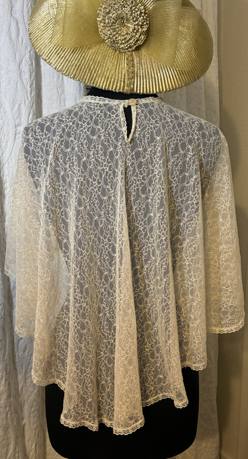 как выглядит Vintage Ivory Floral Lace Capelet Bridal Wedding Shawl Boho Shrug Wrap Cover Up фото
