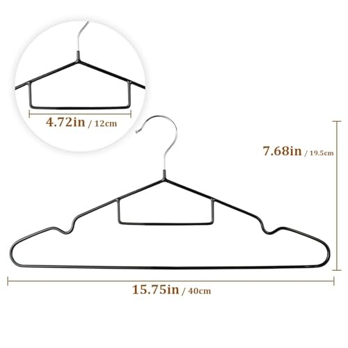 Clothes Hangers, 20Pack Metal Hangers with Tie Bar,15.75 in Shirt 20 Pack Black