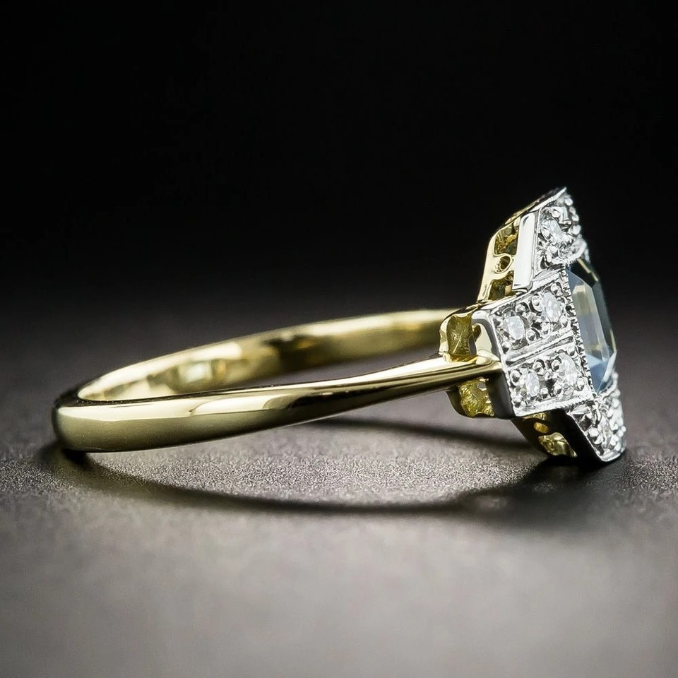 как выглядит 3Ct Art Deco Style Aquamarine Lab Created Diamond Anniversary 14K Gold FN Ring фото
