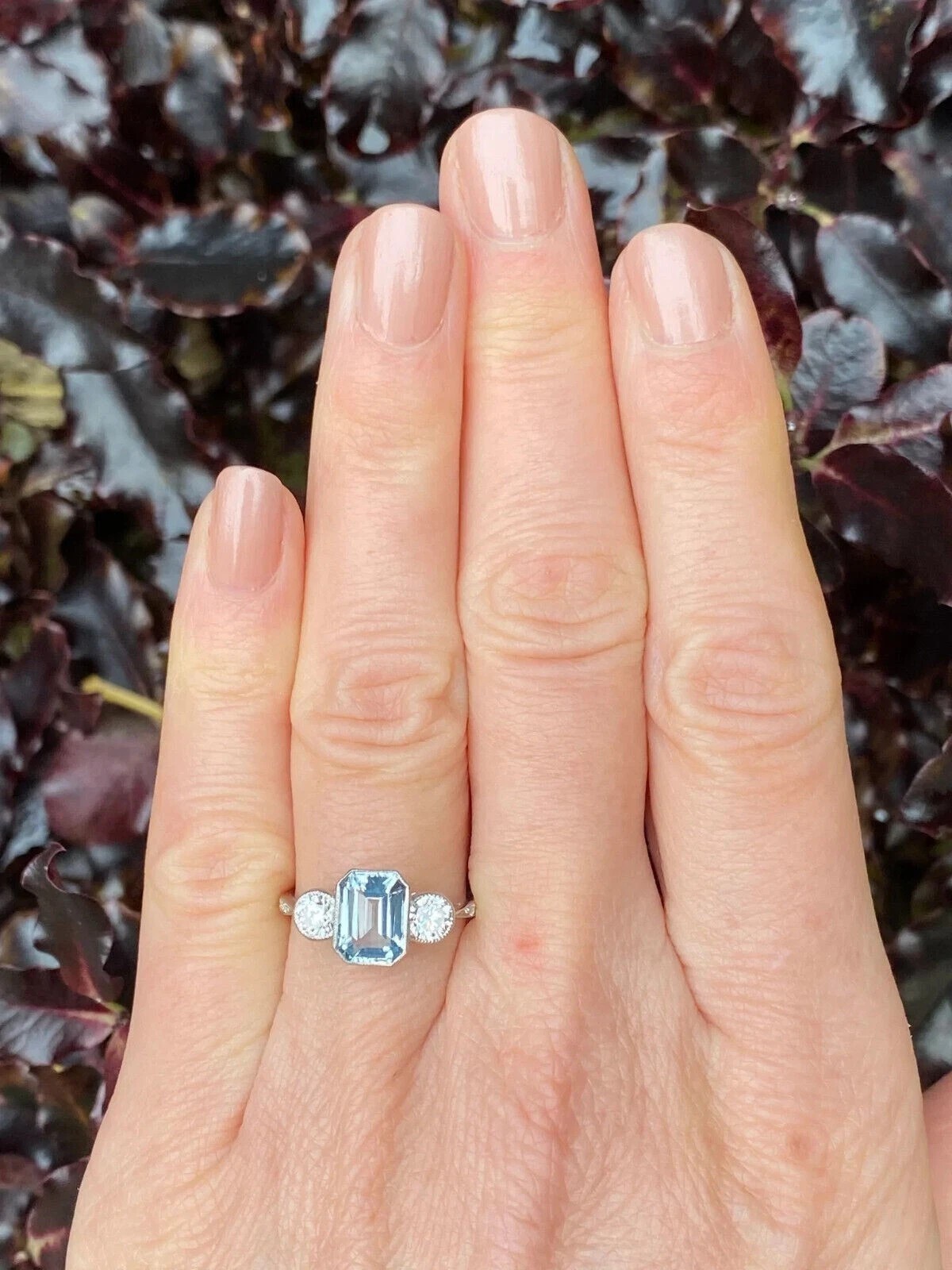 как выглядит 2.65Ct Art Deco Style Lab Created Aquamarine Anniversary 14K White Gold FN Ring фото