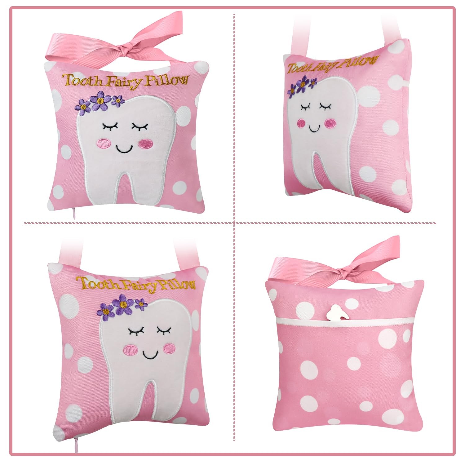 Tooth Fairy Pillow set Pink Nursery Keepsake with Pocket for kids