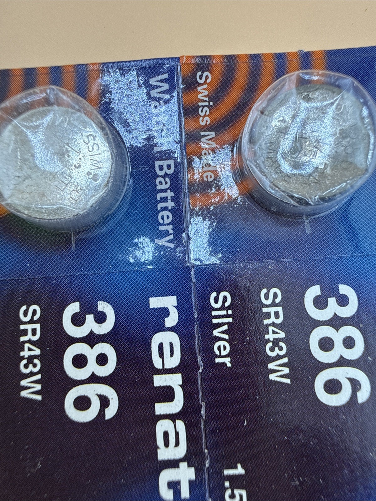 как выглядит 2 x Renata 386 Watch Batteries, 1.55V, 0 MERCURY equivalent SR43SW, 301 фото