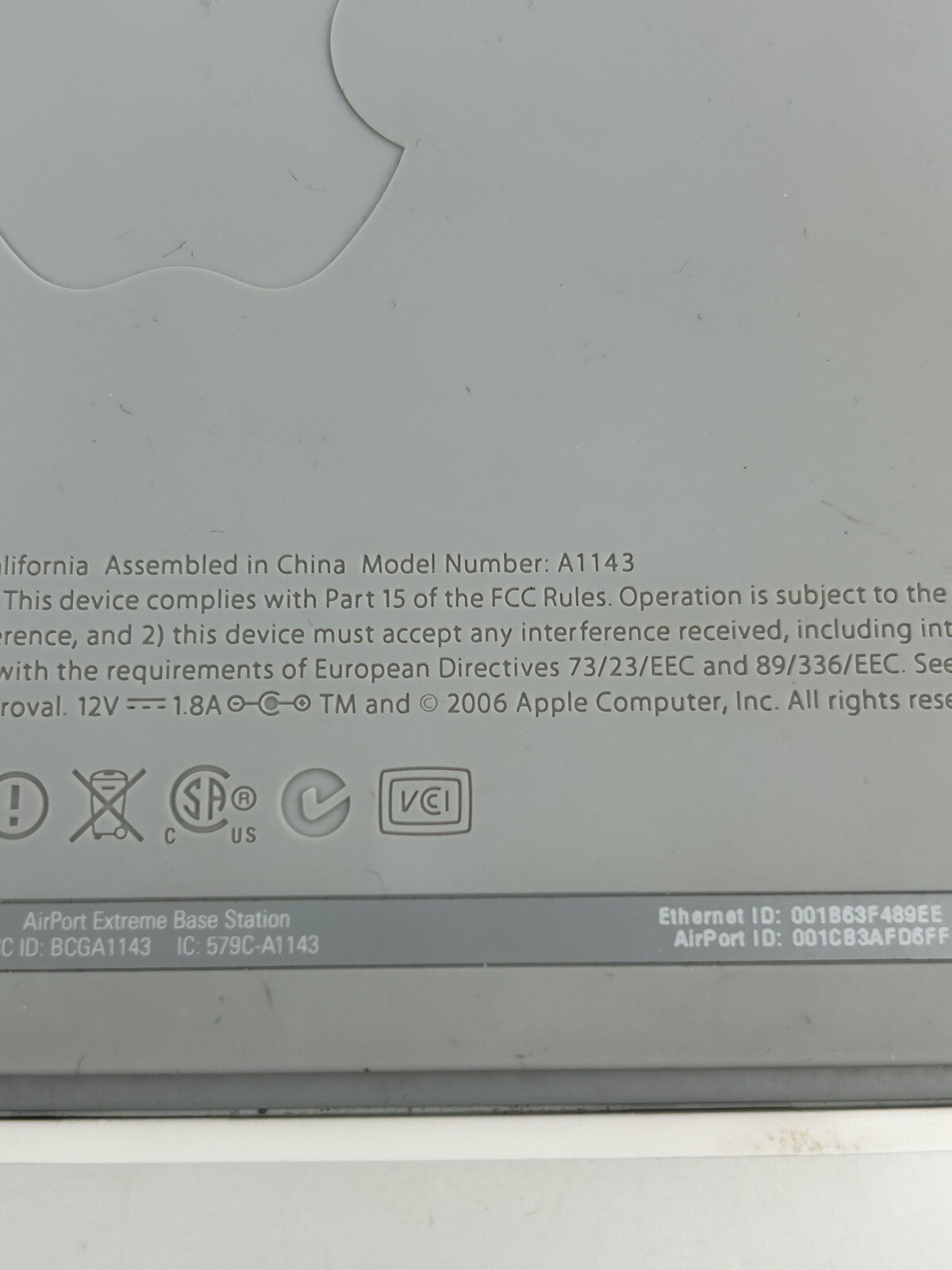 Apple Airport Extreme Base Station A1143 Router W/ AC Adapter CD UNTESTED