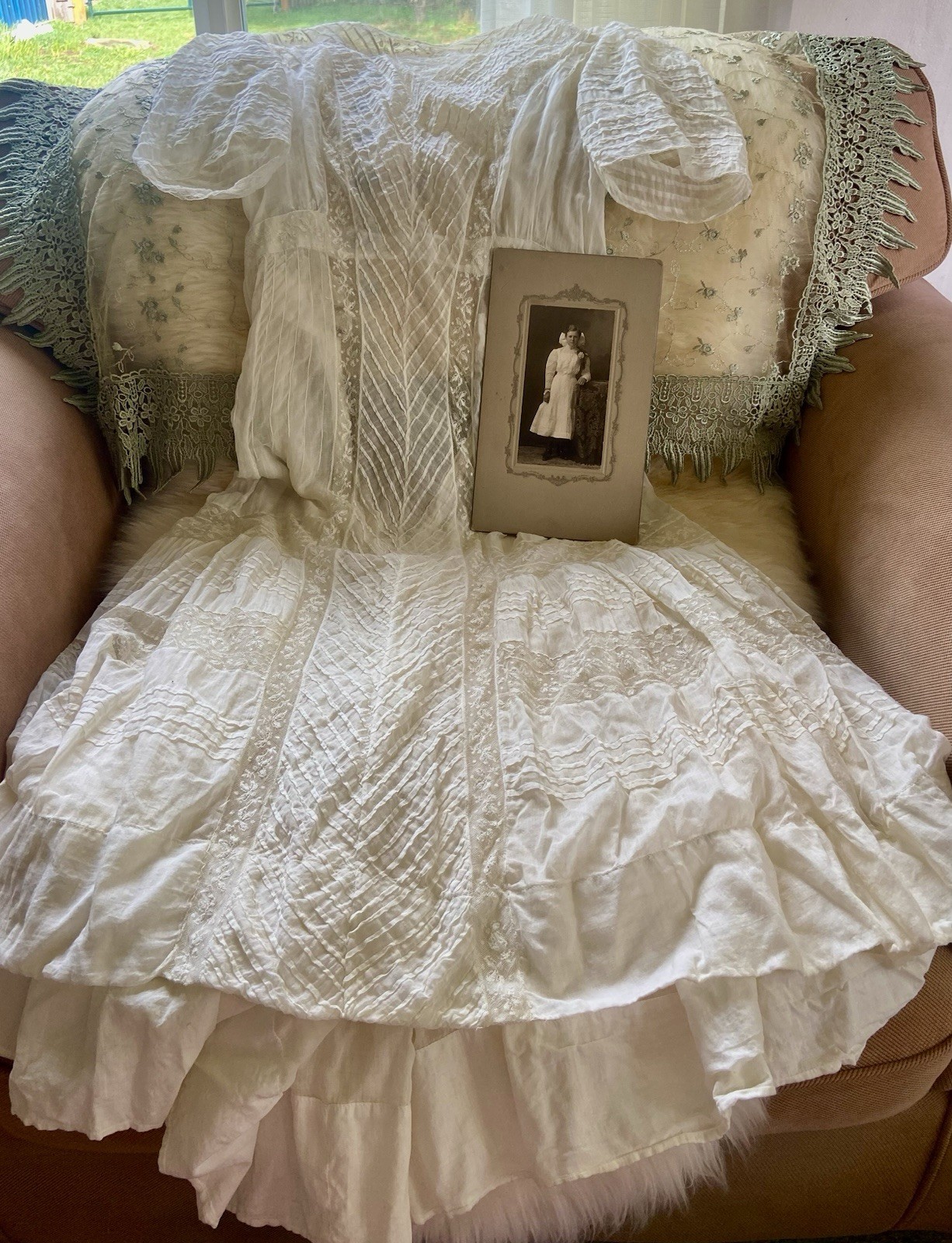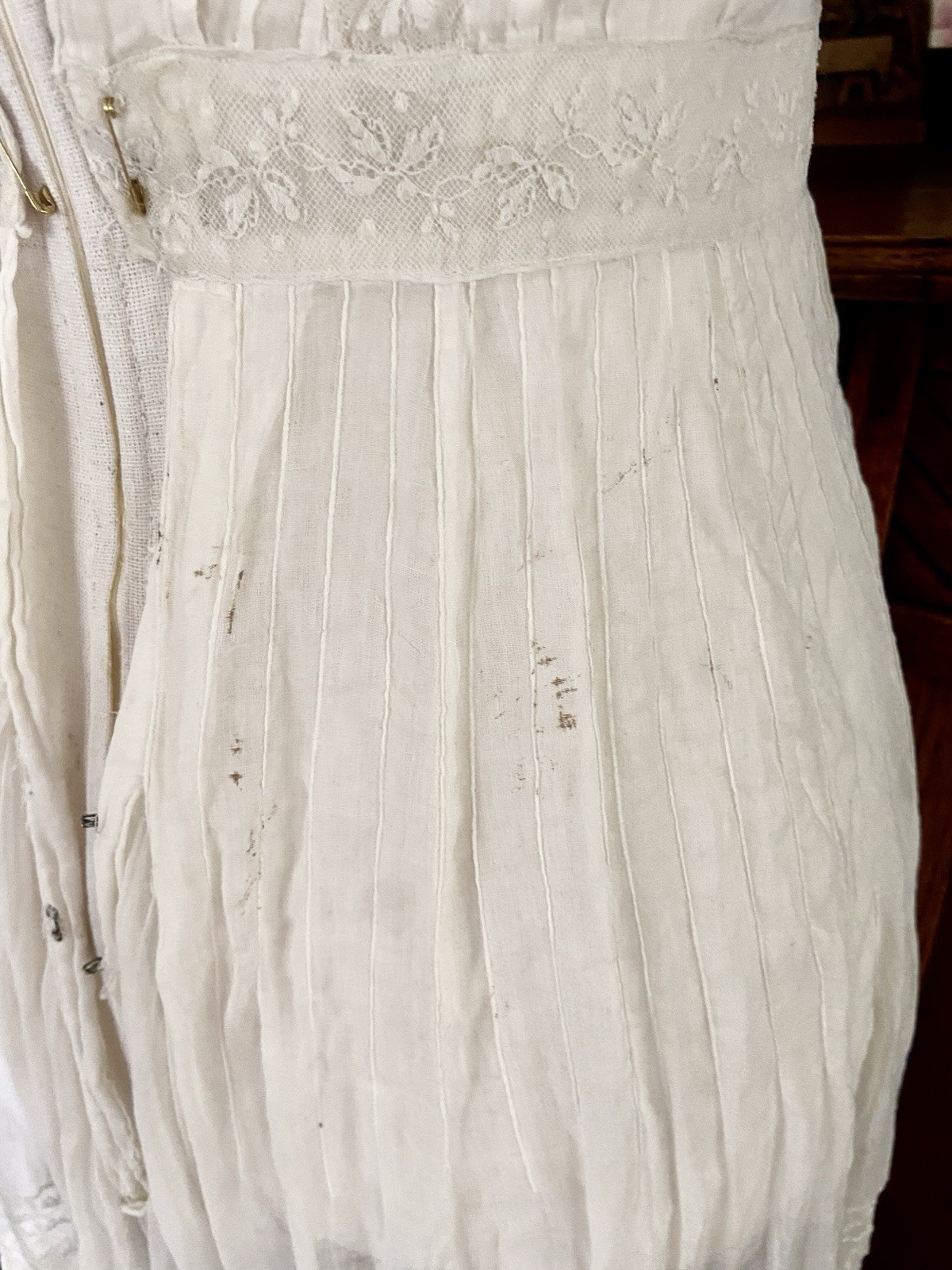 1907 Antique Embroidered Edwardian Era White Muslin Lace Dress Hazel Slifir 13