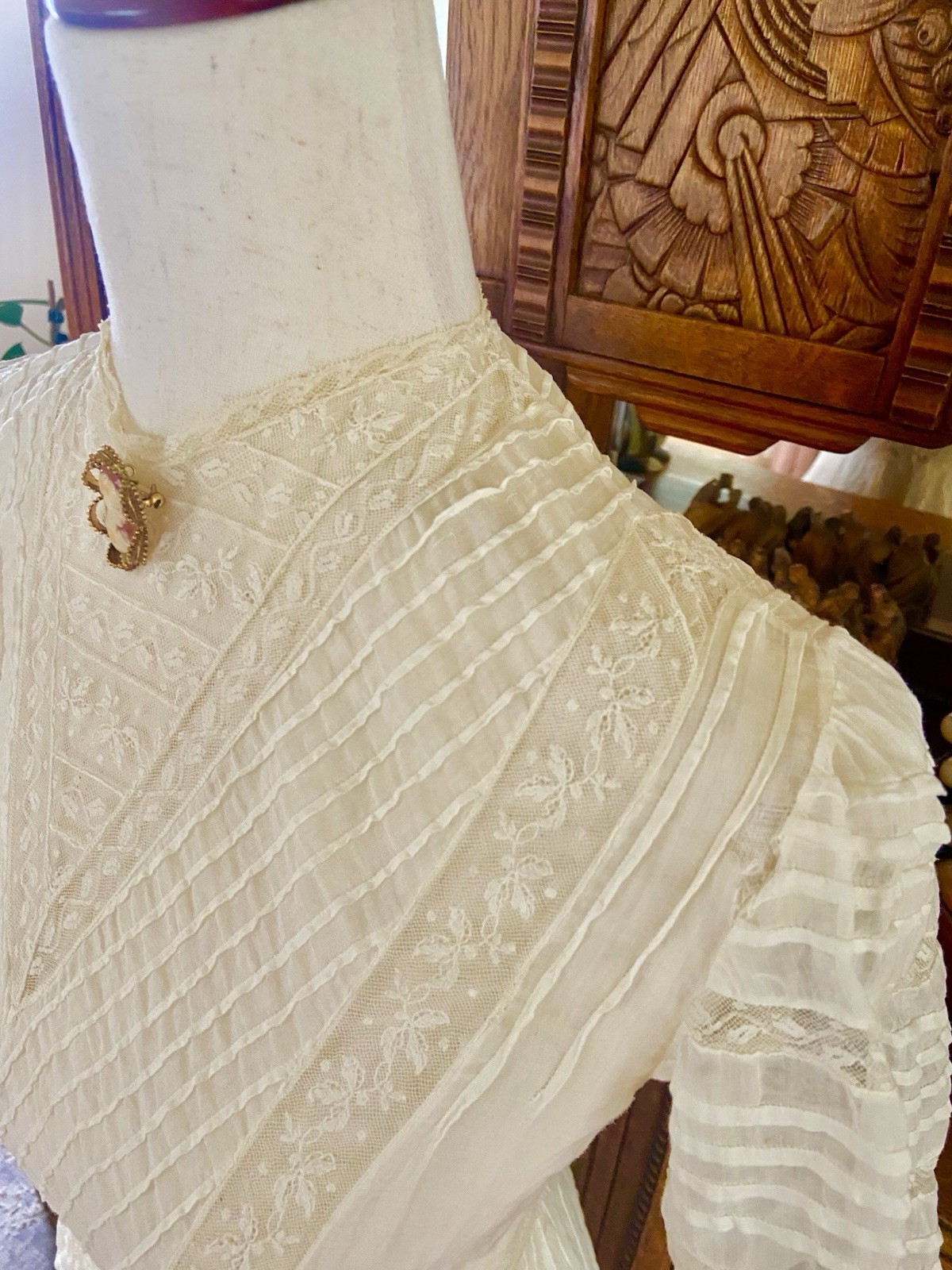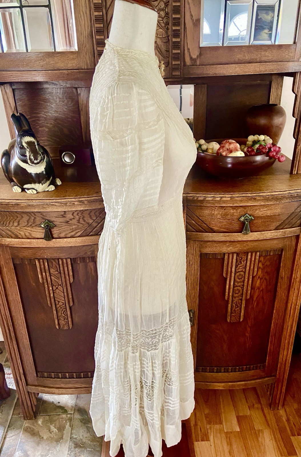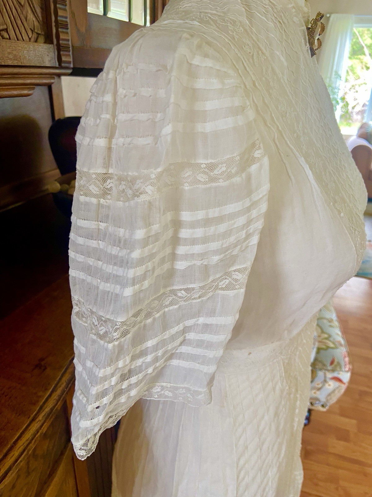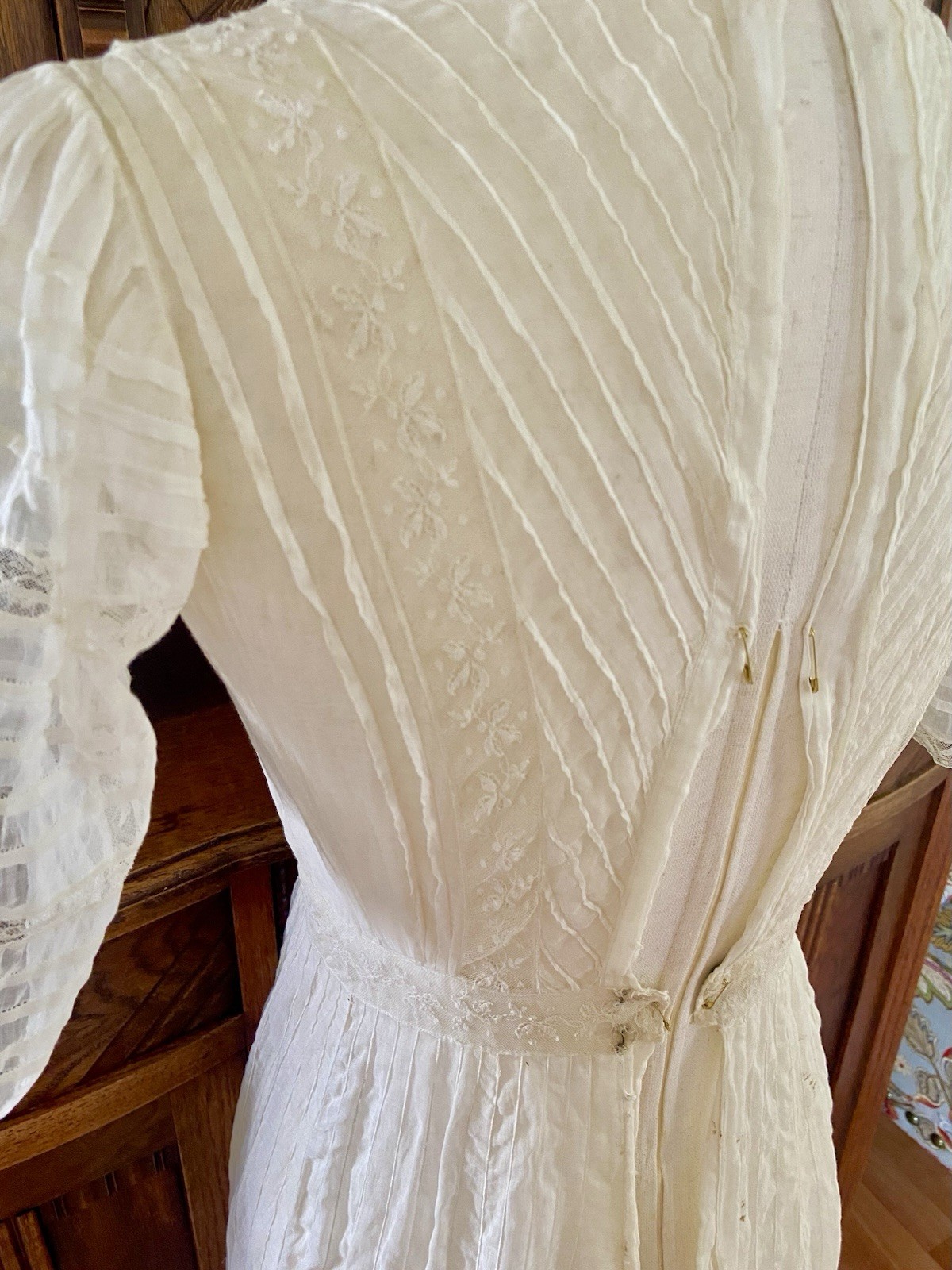 как выглядит 1907 Antique Embroidered Edwardian Era White Muslin Lace Dress Hazel Slifir 13 фото