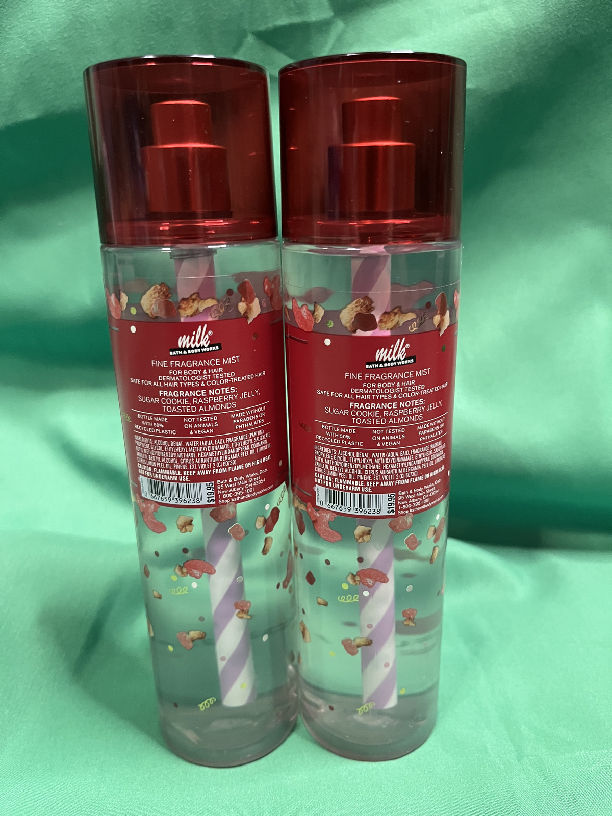 как выглядит 2 Bath And Body Works Milk Raspberry Holiday Pie Bar  8 oz Fine Fragrance Mist фото