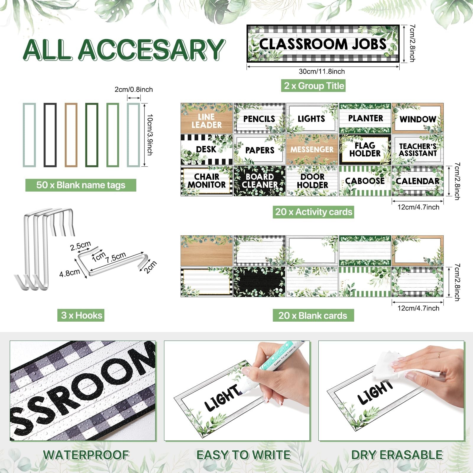 96 Pieces Farmhouse Classroom Jobs Pocket Chart Set Class Jobs Bulletin Board...