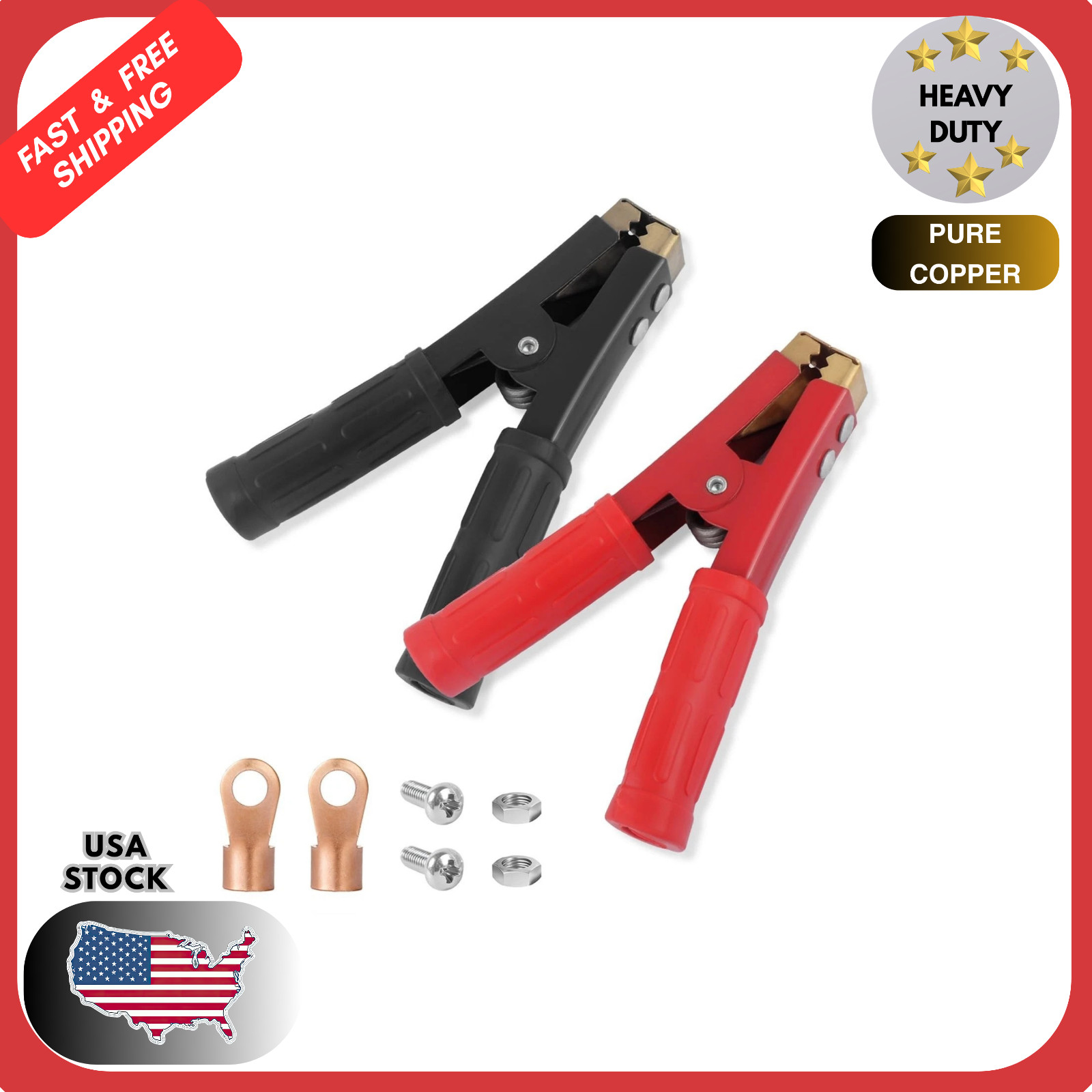 2PCS Car Battery Charger Clamps Replacement,1000A Heavy Duty Jumper Cable Clamps