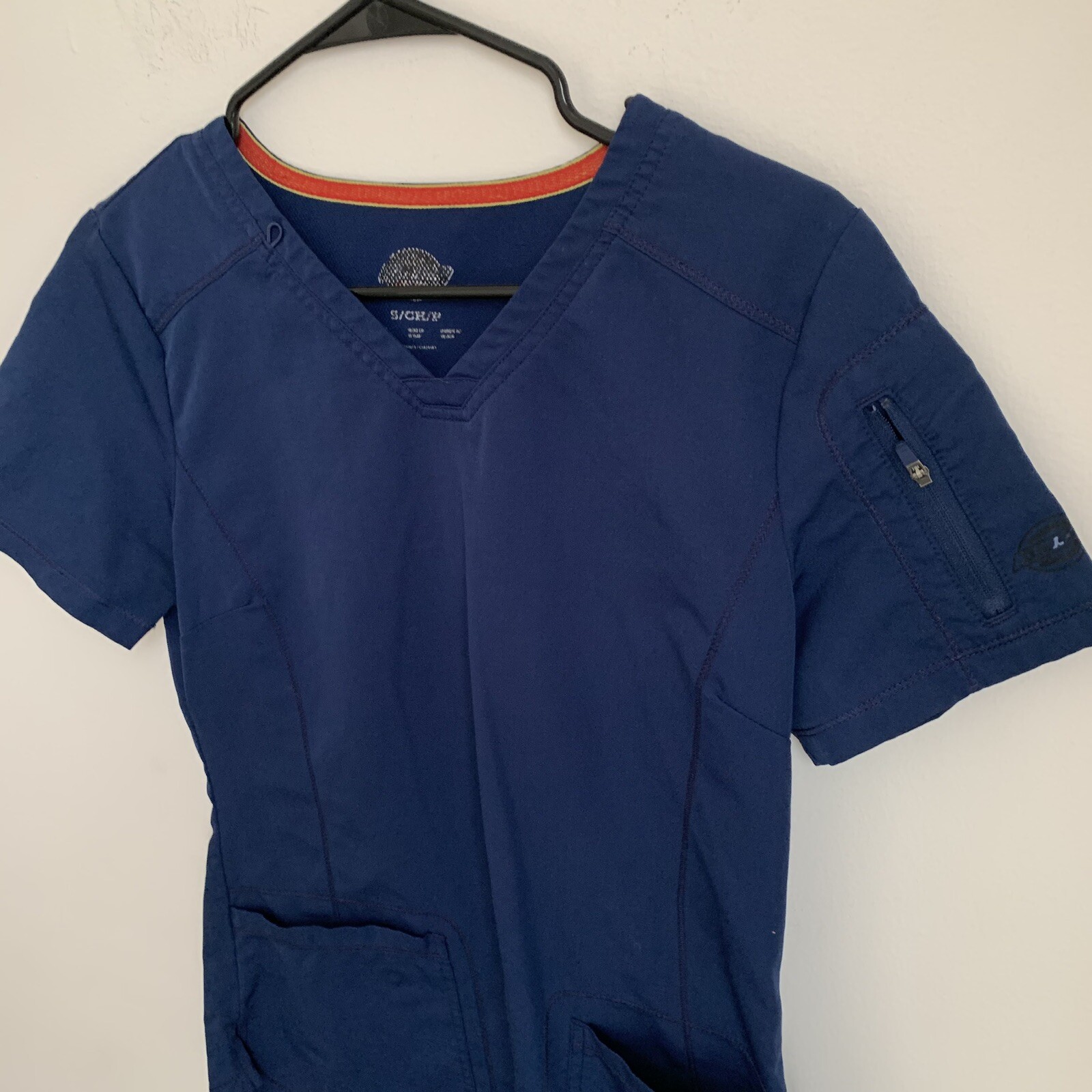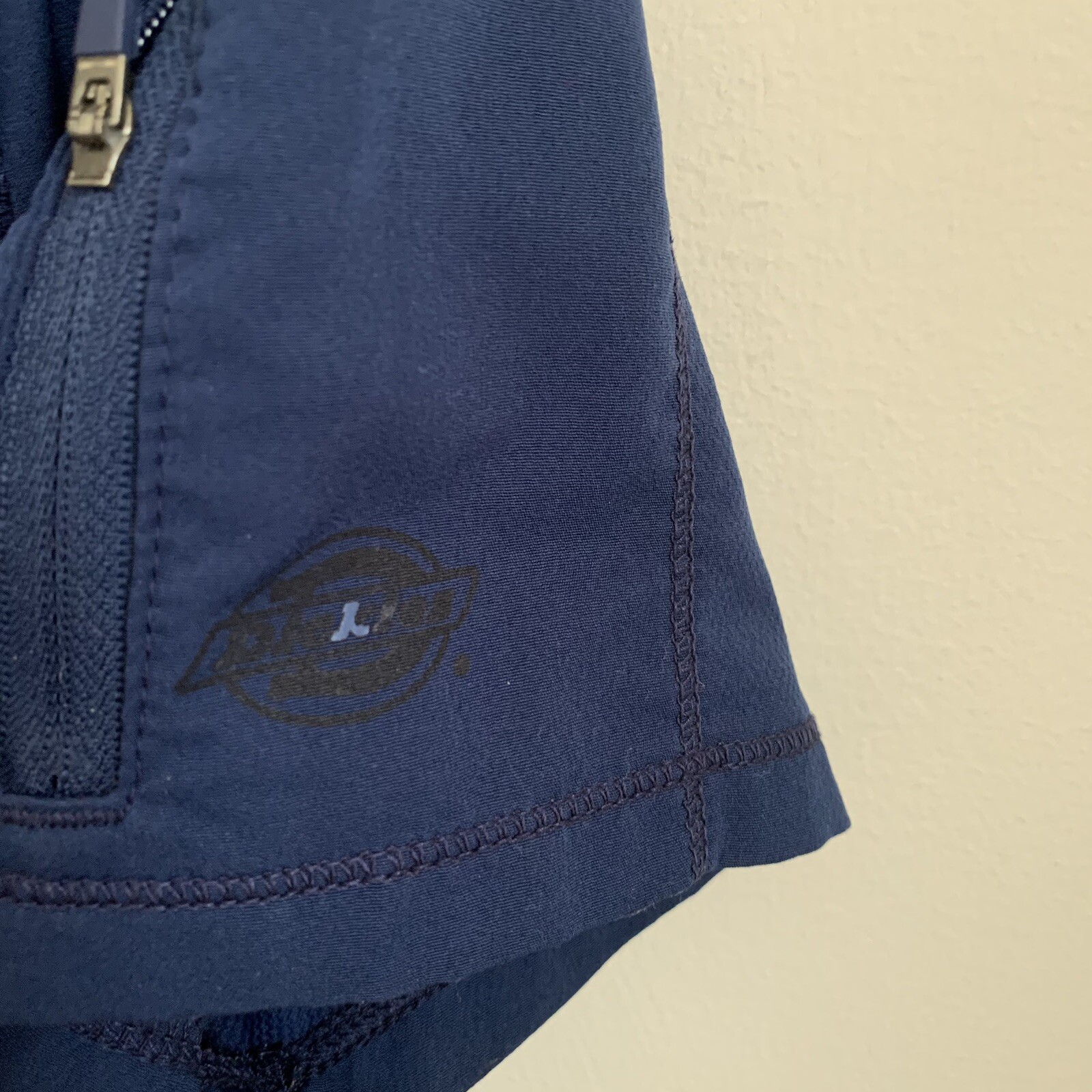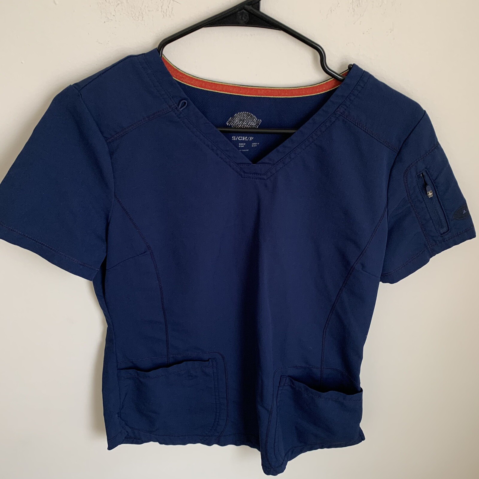 как выглядит Dickies Womens Size S Navy Blue Scrub Top V-Neck Pockets Work Shirt Zip Pockets фото