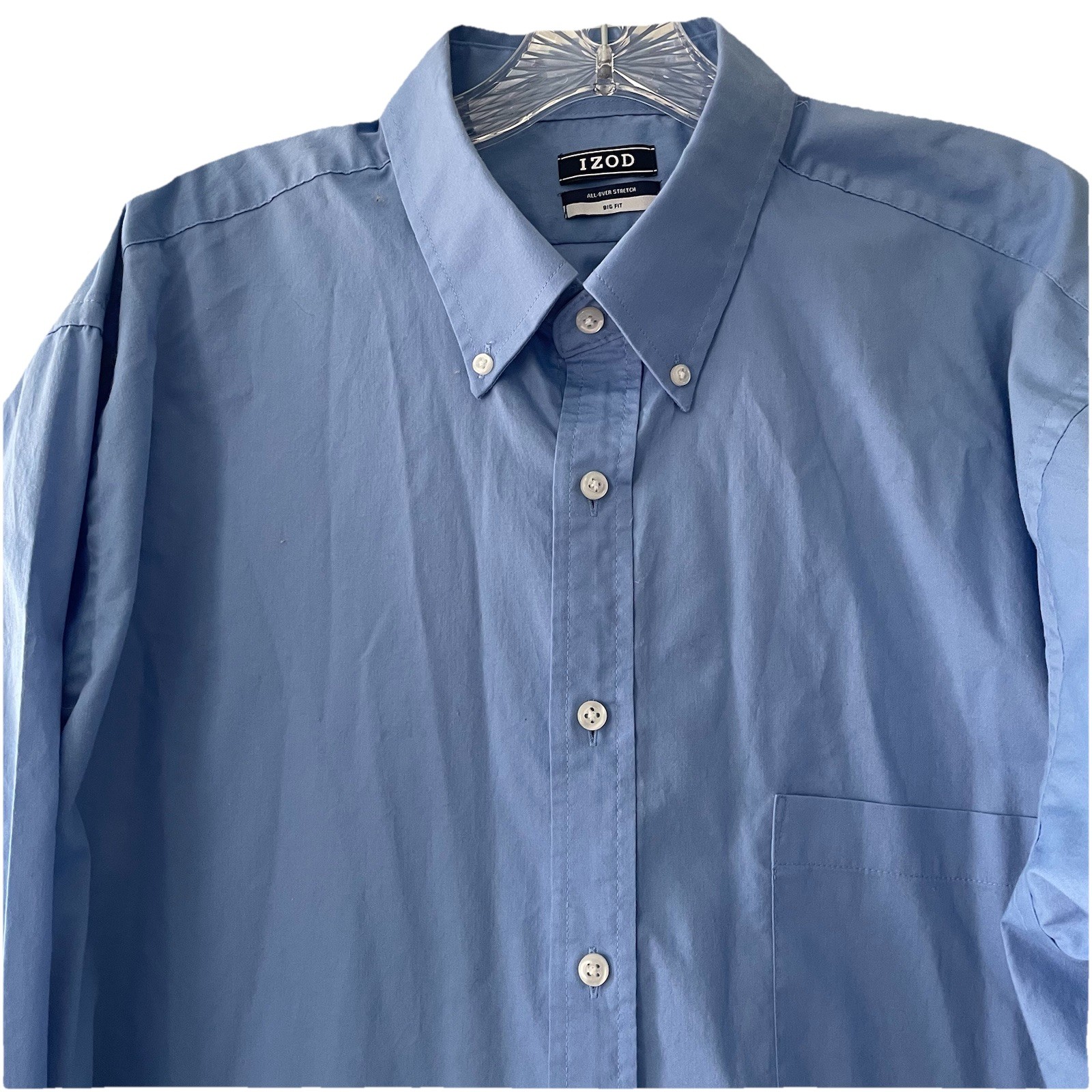 Izod All-Over Stretch Big Fit Men Size XL 18 34/35 Blue Button Down Dress Shirt