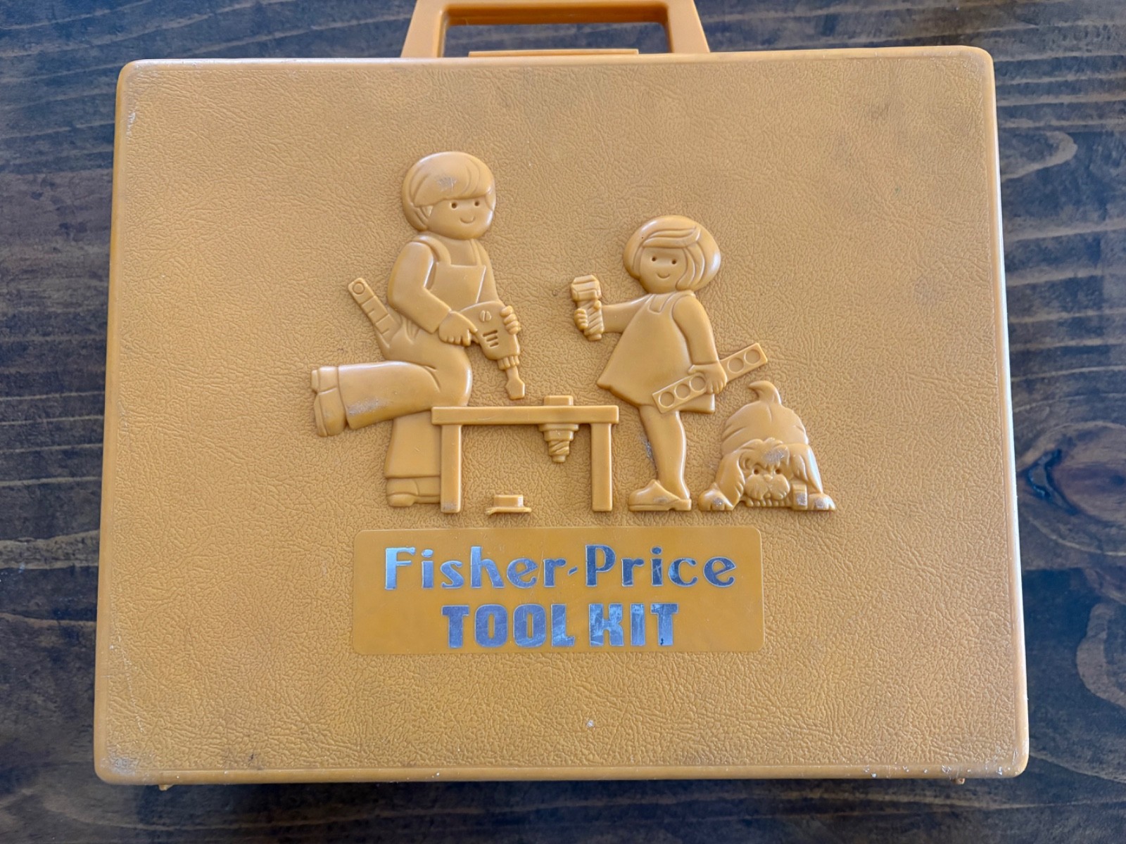 Vintage 1970s Fisher Price Tool Kit Preschool Pretend Play Drill Carry Case
