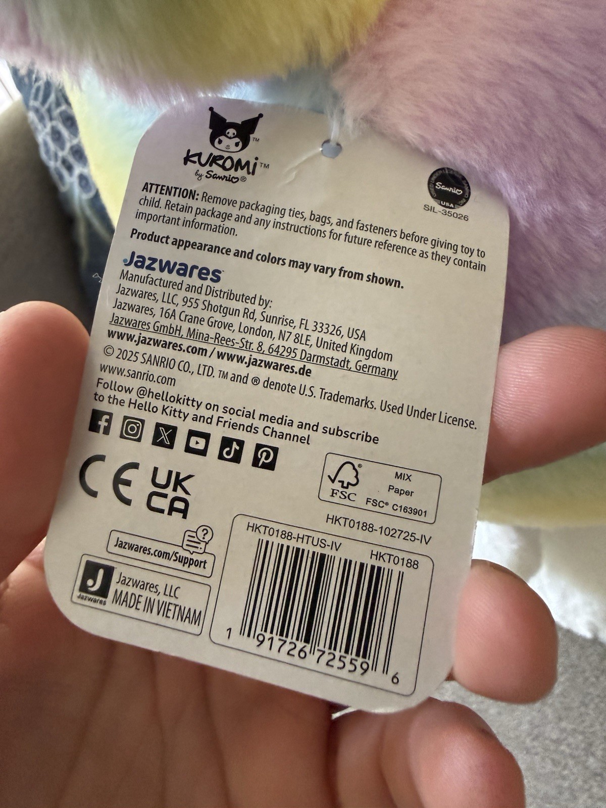 как выглядит NEW WITH TAGS Kuromi Sanrio 20 Inch Jumbo Plush Pastel Rainbow Series 1 RARE фото