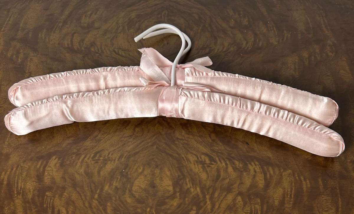 как выглядит Satin Padded Pink Boudoir Clothing Hangers Lingerie Vintage Boho Lot Of 7 фото