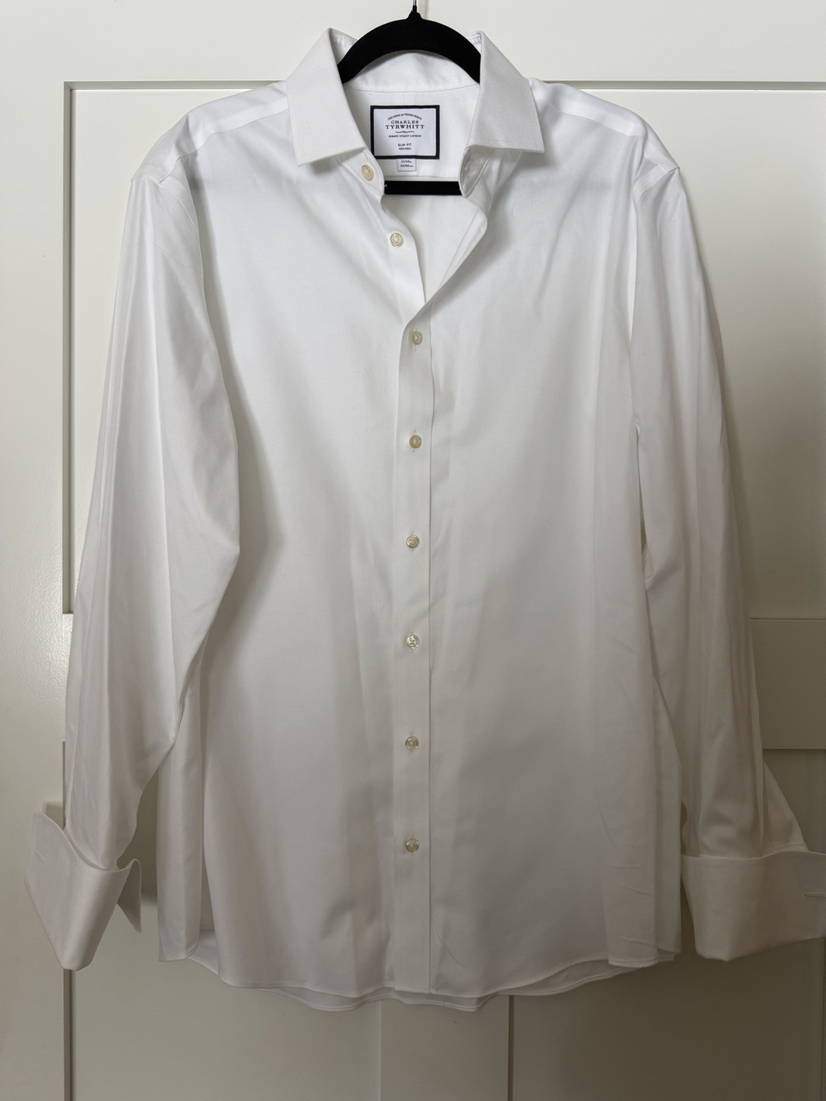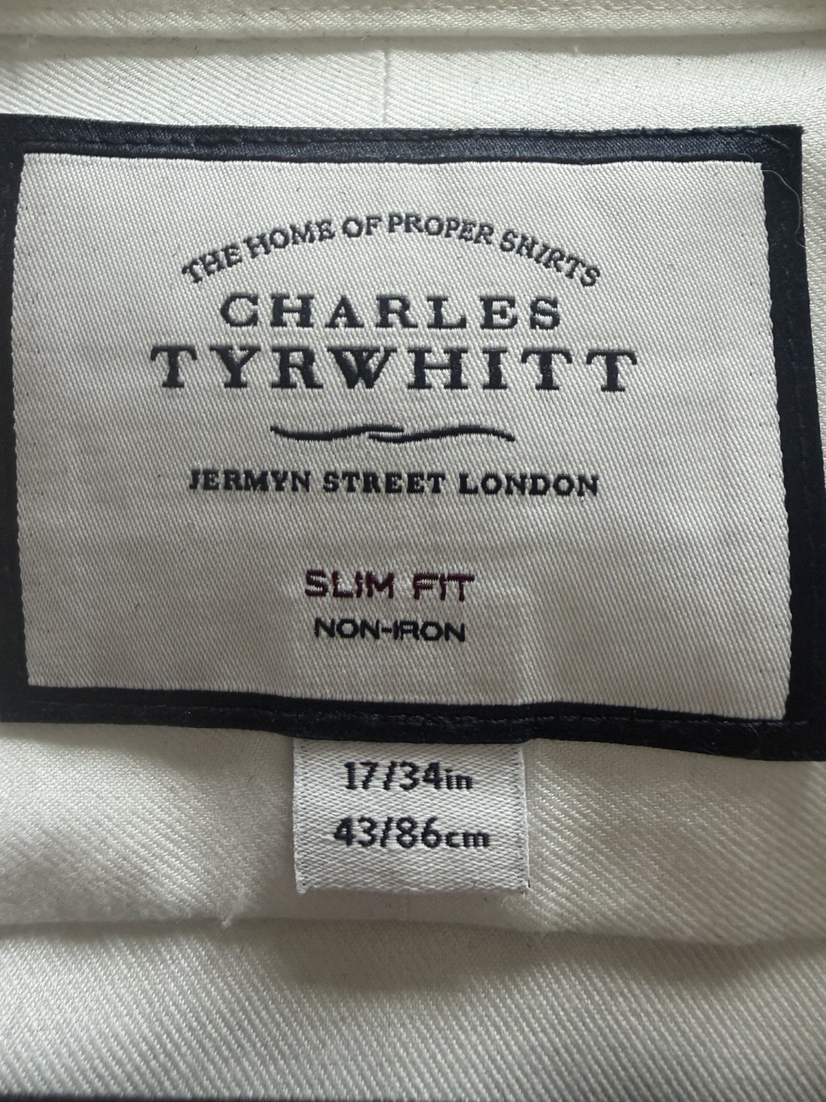 как выглядит Charles Tyrwhitt Twill Shirt Mens 17-34 French Cuff Dress Button Up White Slim фото